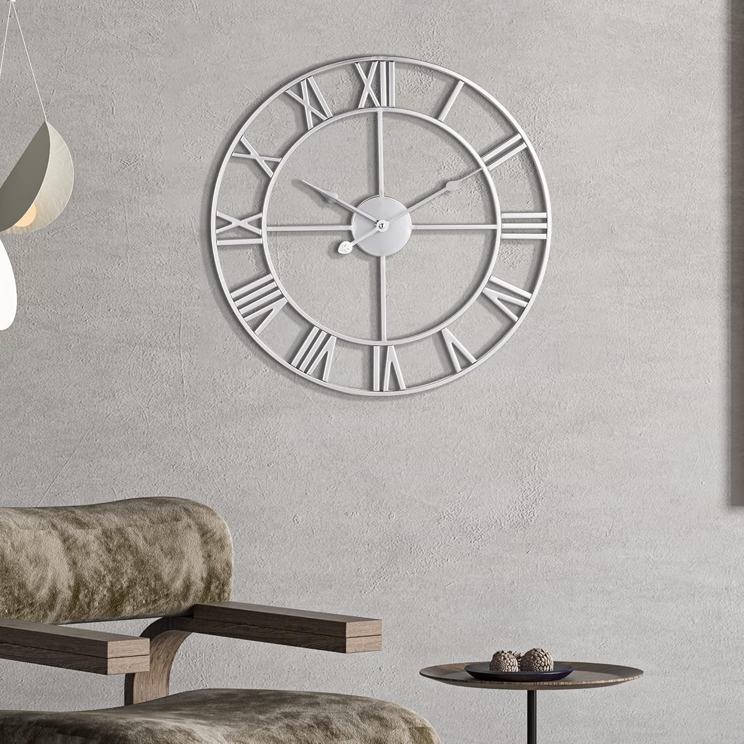 - 【INDUSTRIAL CLOCK】Large retro metal clock in hollowed-out design, frame of the wall clock is hand-made by solid iron, and high- quality materials ensure the robustness and retro appearance of the Roman wall clock.