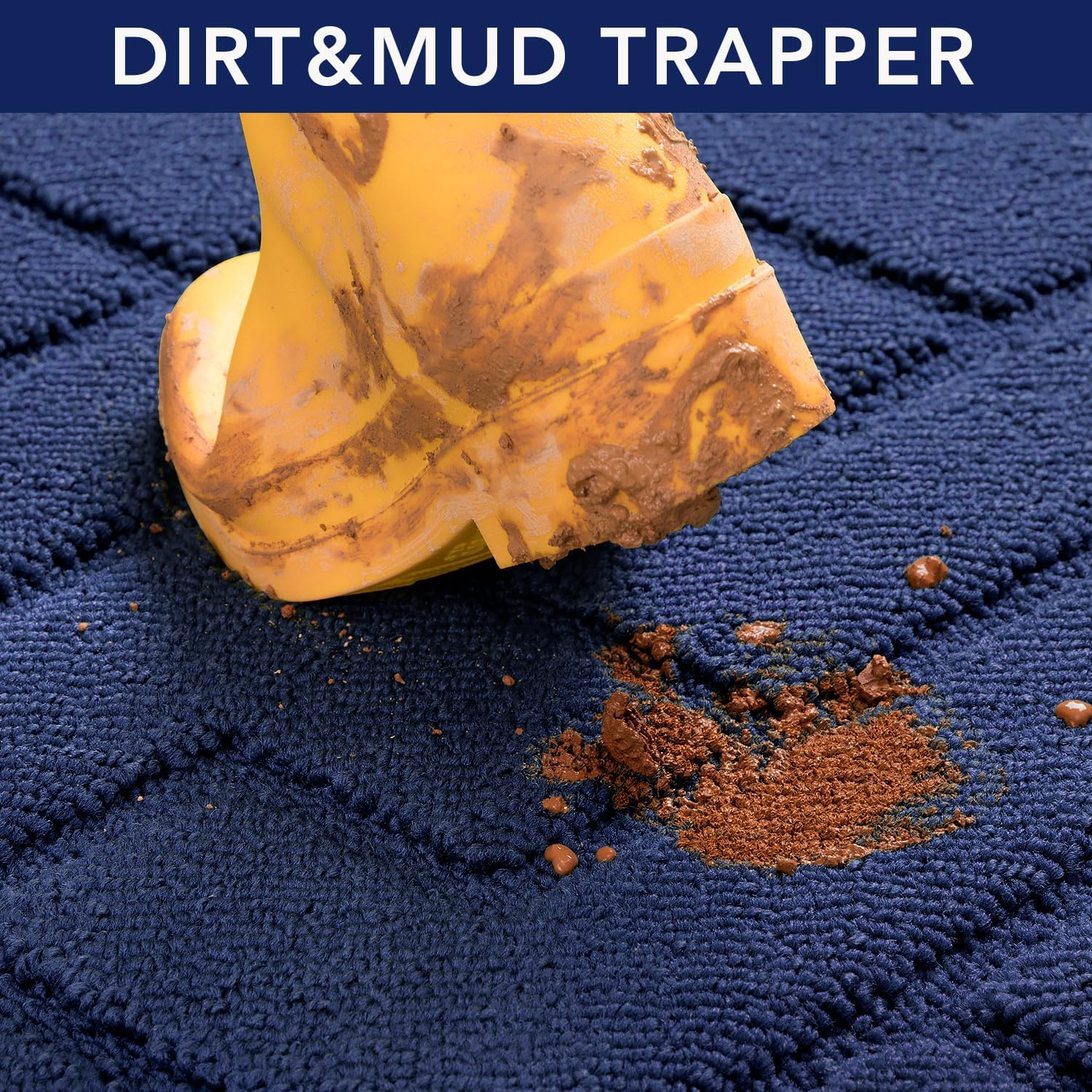 hicorfe Indoor Doormat,Front Back Door Mat Rubber Backing Non Slip Door Mats 24"x35" Absorbent Resist Dirt Entrance Doormat Inside Floor Mats for Entryway Washable Low-Profile (Navy Blue)