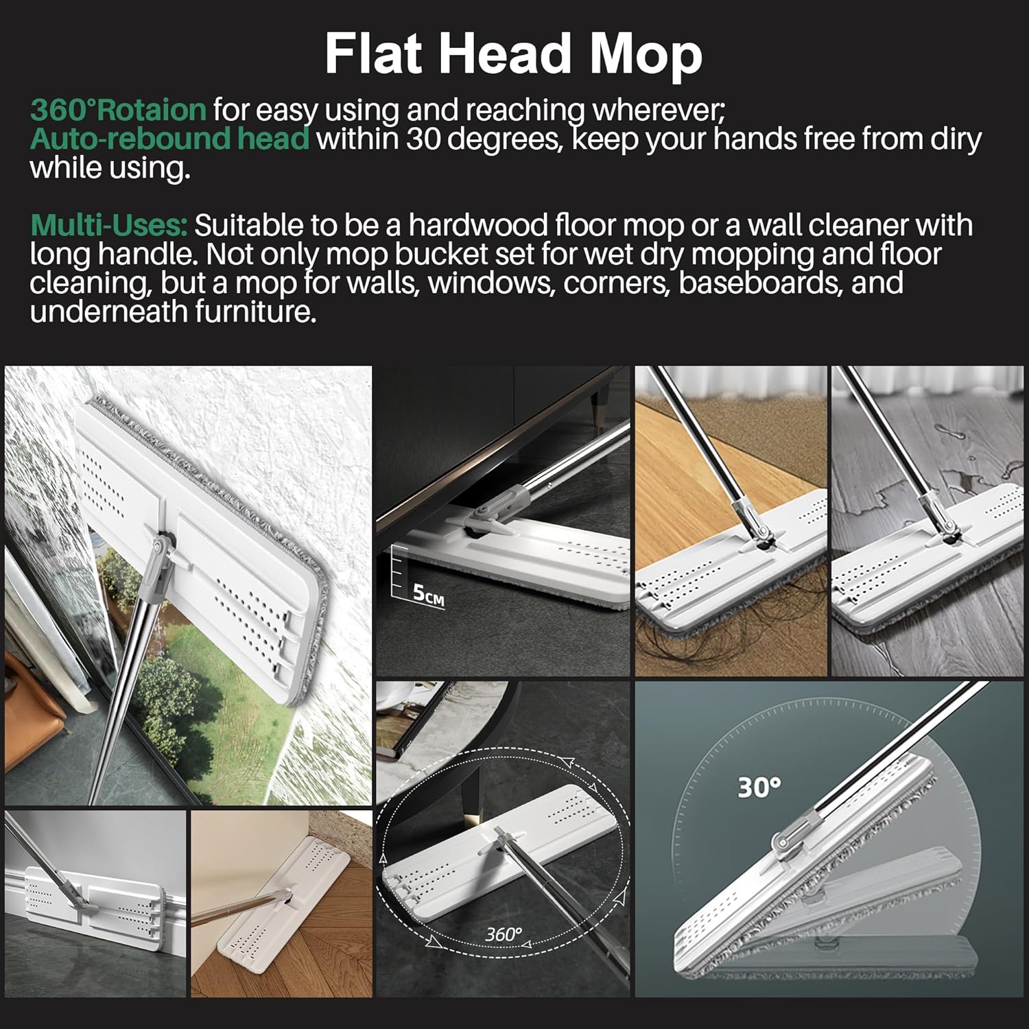 - [MOP AND BUCKET] Self cleaning mop, SAVE your time and labor, let the bucket does more than by yourself, mopping is just between mop and bucket, be free from dirty water, All you need to do is inserting and pulling the mop.