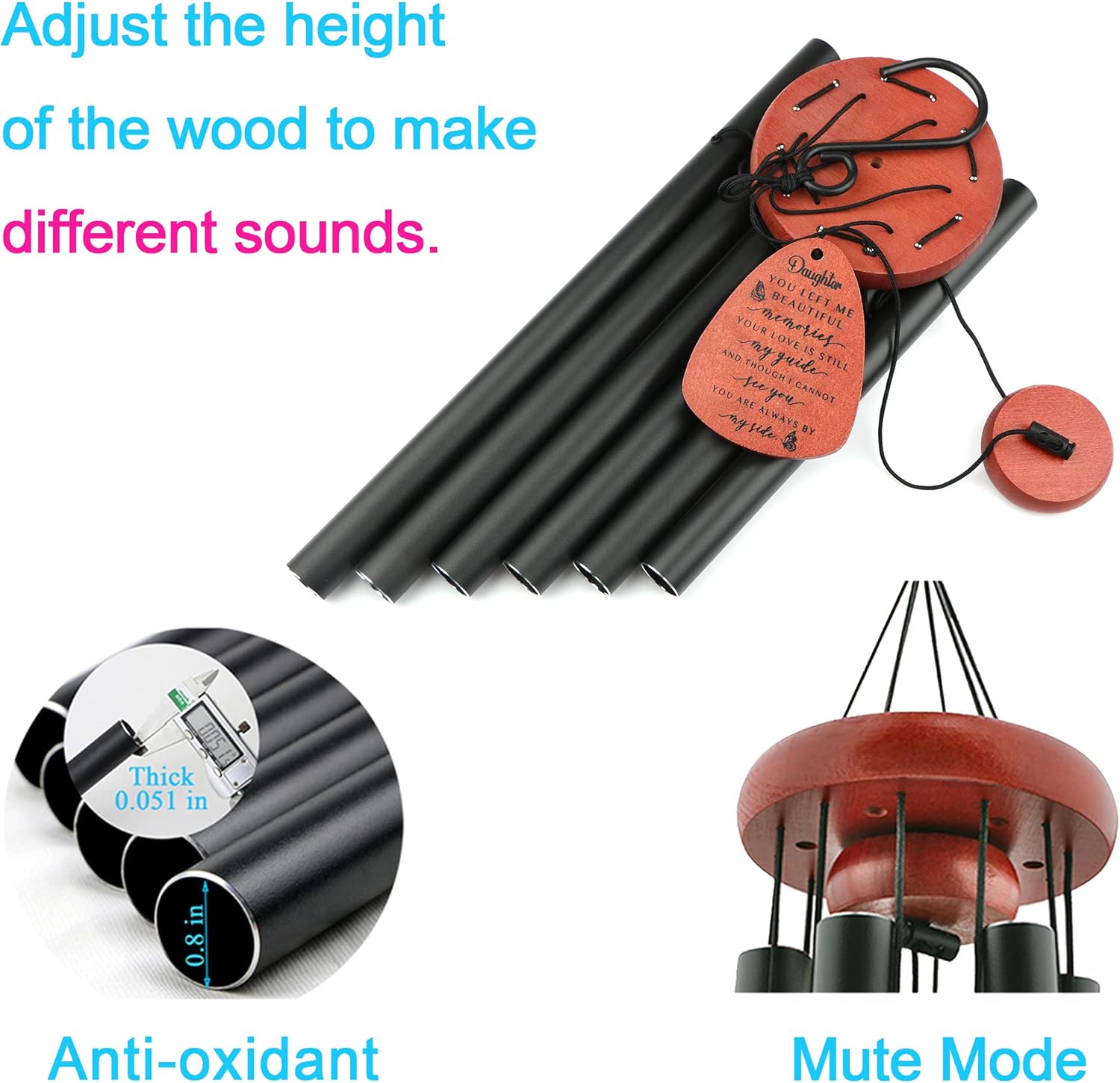 - Premium Quality Memorial Wind Chimes: Made with high-quality aluminum tubes and a corrosion-resistant black anodized finish, these memorial wind chimes produce clear, beautiful tones. The bell holder, striker, and wind catcher are made from durable beech wood, and the entire structure is supported by a strong, weather-resistant nylon cord for lasting outdoor use