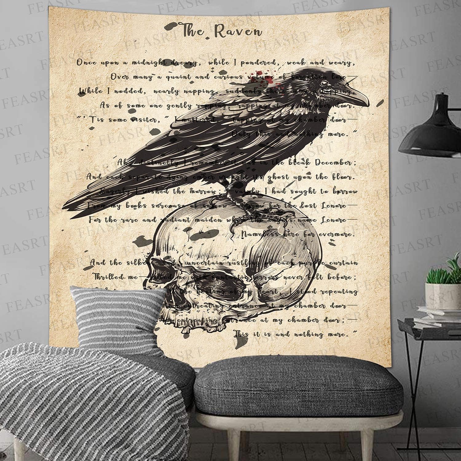 Tapestry Wall Hanging Ancient Raven Hymn Wall Decor for Gothic Rustic Home Room, 84x90 Inches Soft Flannelette, Gothic Skull and Raven Dictionary Poster GTQQAY1546