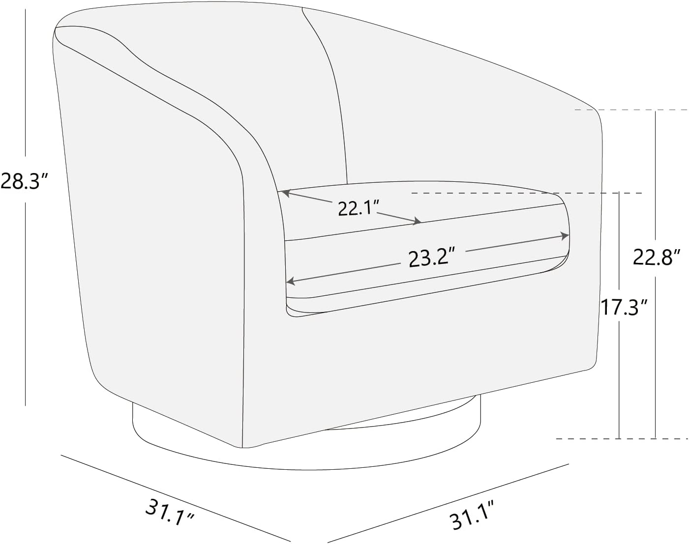 - Dimension - Overall Product Dimension: 31.1''D x 31.1''W x 28.3''H. Seat Dimension: 22.1''D x 23.2''W x 17.3''H. Weight capacity: 350 lbs.