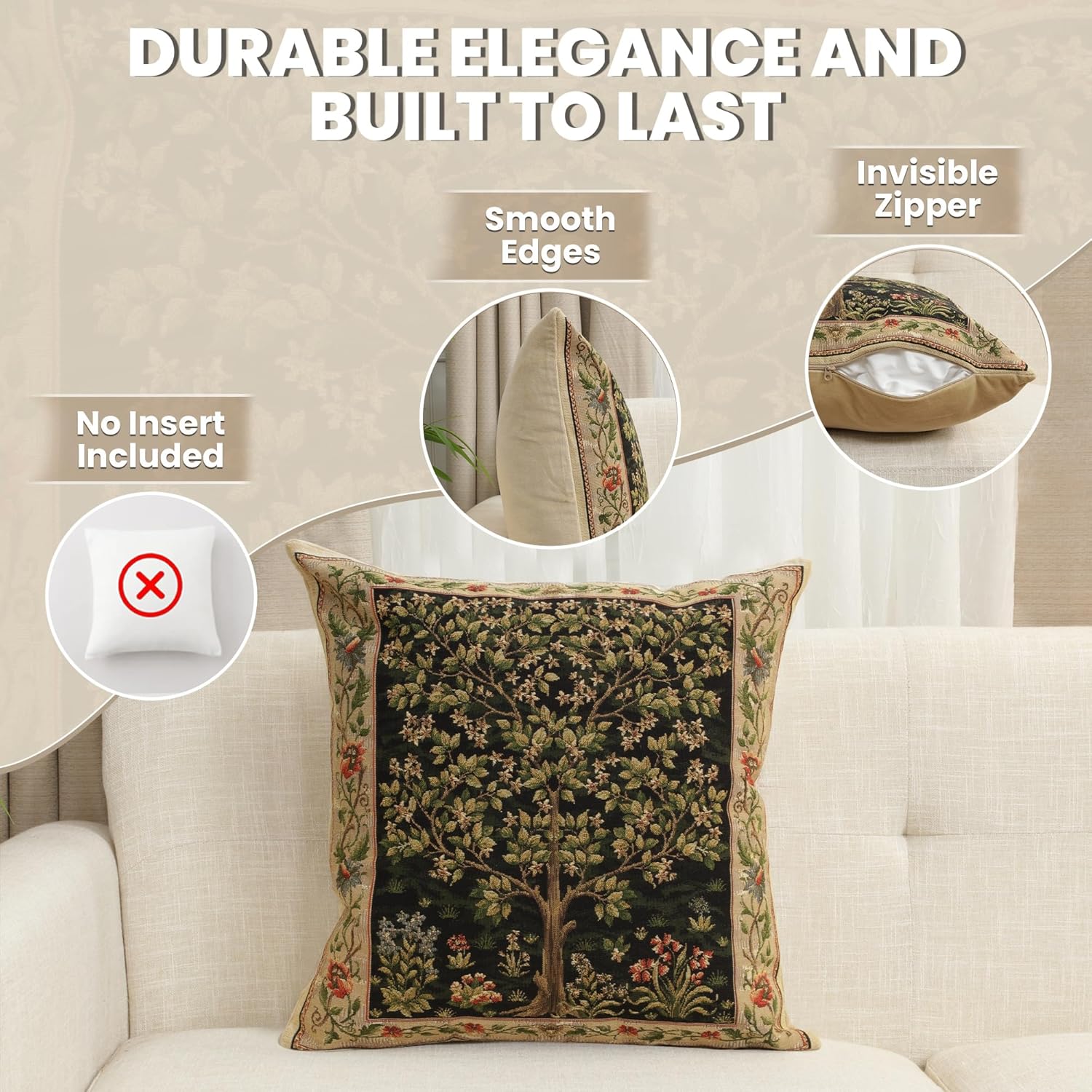 - Exclusive Design Excellence: The decorative pillow covers are made of high-quality jacquard woven fabric, 100% cotton for extreme comfort and durability. The designs of these William Morris pillow covers are woven with precision using the most vibrant colors. The zippers are hidden and overlock stitch seams create an appearance of sophistication while providing durability for any home decor
