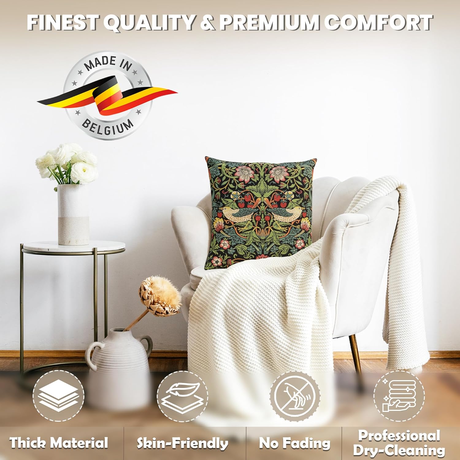 - Exclusive Design Excellence: The decorative pillow covers are made of high-quality jacquard woven fabric, 100% cotton for extreme comfort and durability. The designs of these William Morris pillow covers are woven with precision using the most vibrant colors. The zippers are hidden and overlock stitch seams create an appearance of sophistication while providing durability for any home decor