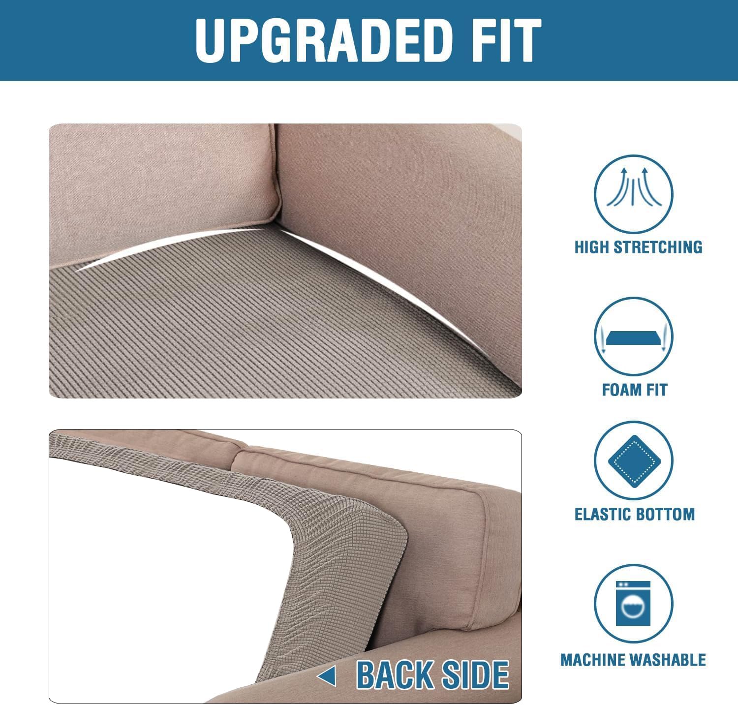 - GREAT FIT: Slipcover Set of 3. This innovated cushion slipcover is crafted from durable and soft high stretch knitted jacquard fabric. Sofa Seat Cover(fit total sitting area between 105-120 inches). Feature one-size-fits-most, kindly measure before ordering. Suitable for both T cushion and Box cushion styles
