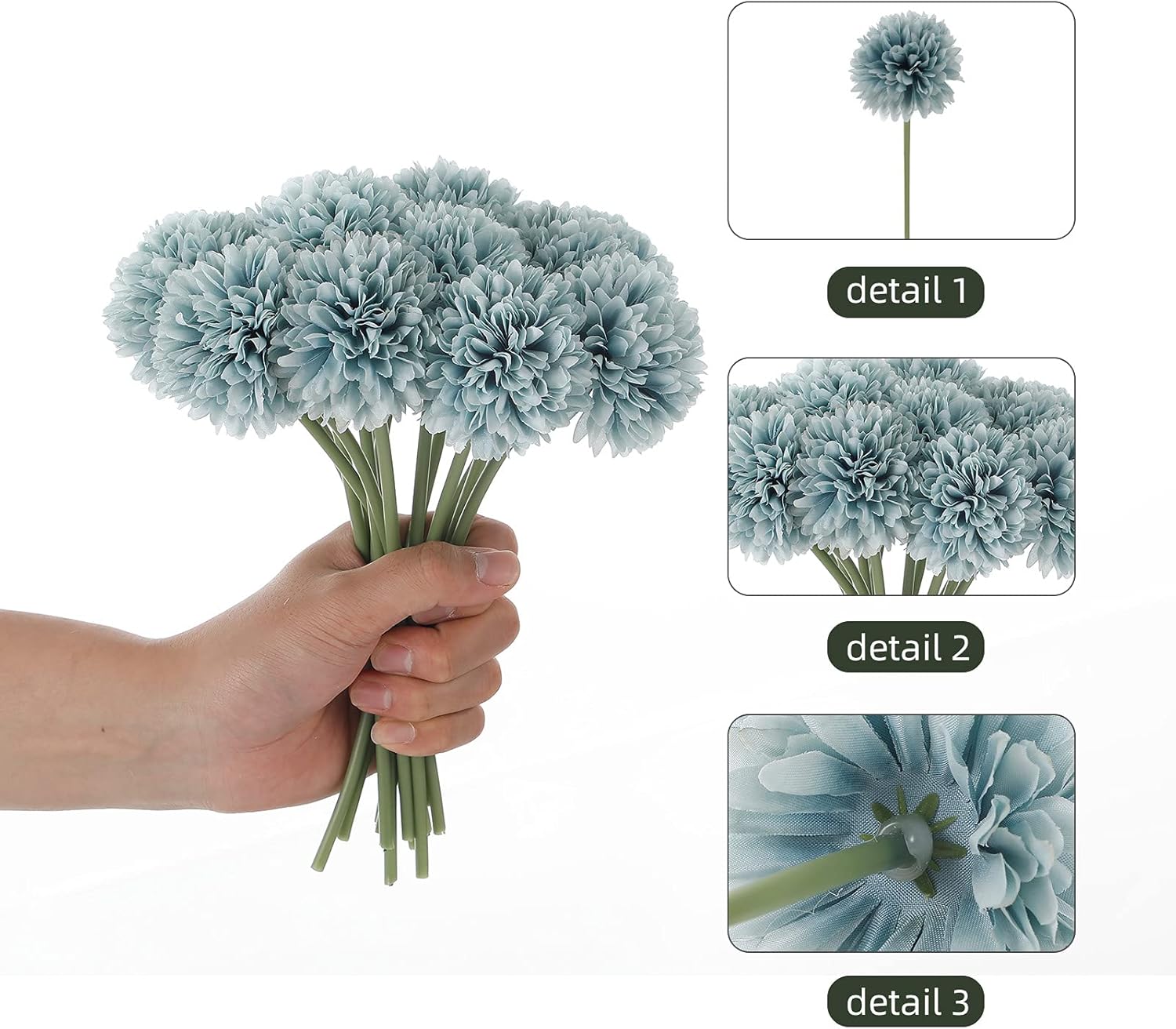 - Quantity and Size: Package includes 20 artificial chrysanthemum ball flowers. (Vase not include).Height:23 cm/9 inch,Diameter of the flower:6cm/2.36inchThey are micro sized The size of the flower head is similar to that of a golf ball Suitable for small vases