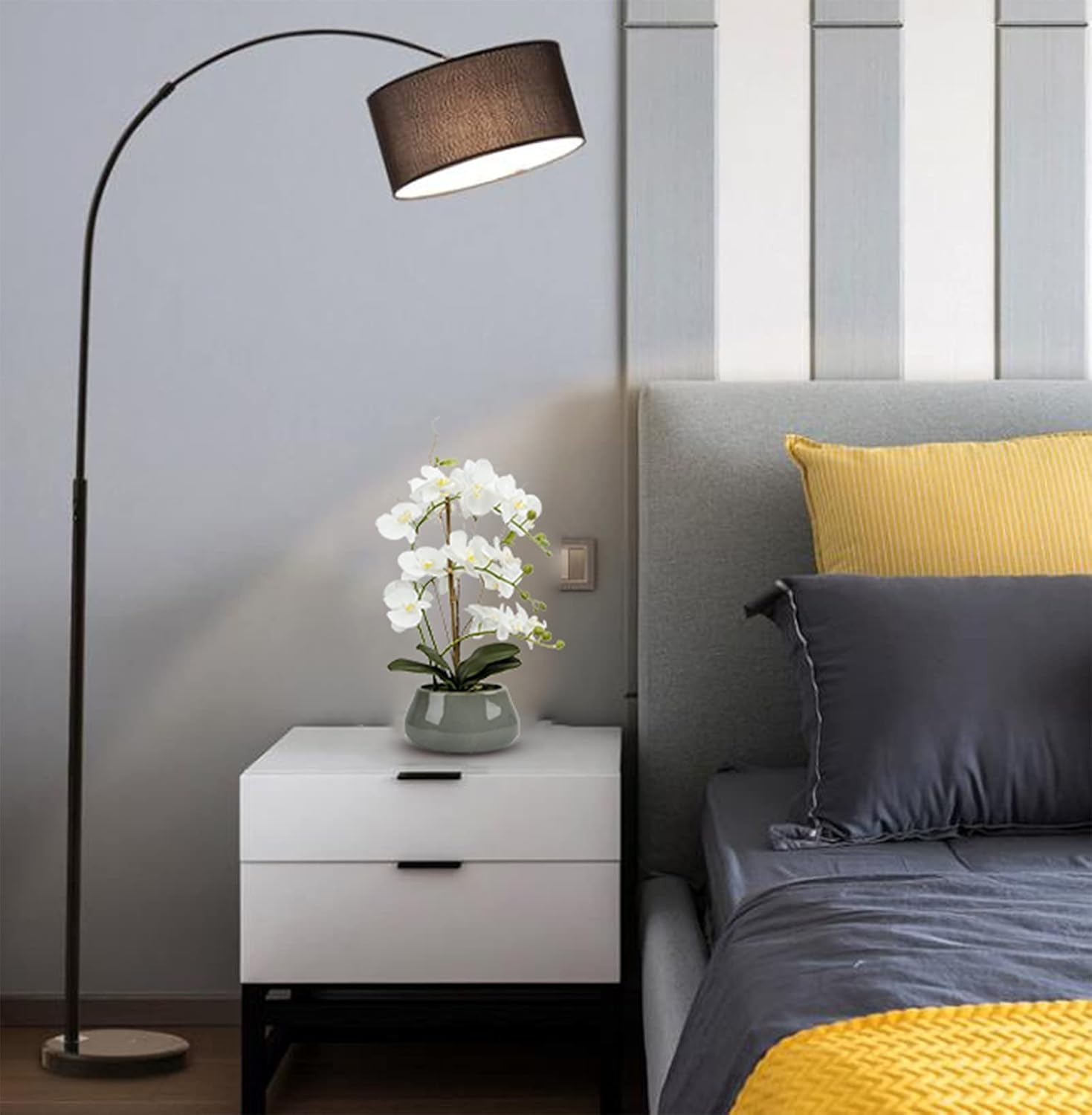 White Orchid Artificial Flowers with Gray Vase Large Silk Faux Phalaenopsis Flowers for Dining Room Table Floral Centerpieces Indoor Decoration