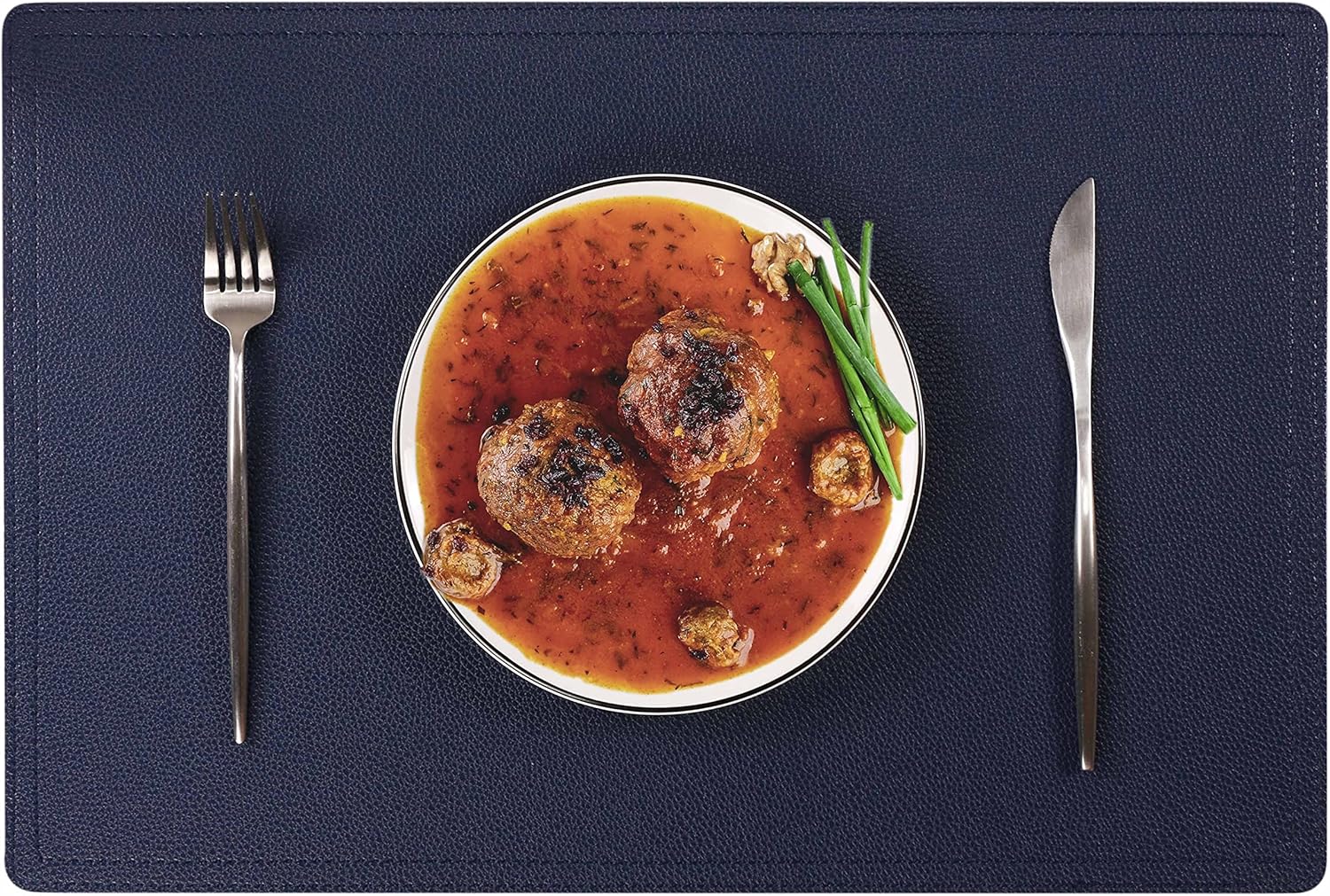 Set of 6 Faux Leather Placemats, PU Table Mats, Waterproof, Stain Resistant, Heat Resistant, Non-Slip Easy to Clean for Kitchen Dining Table,Conference Table C Blue Rectangle