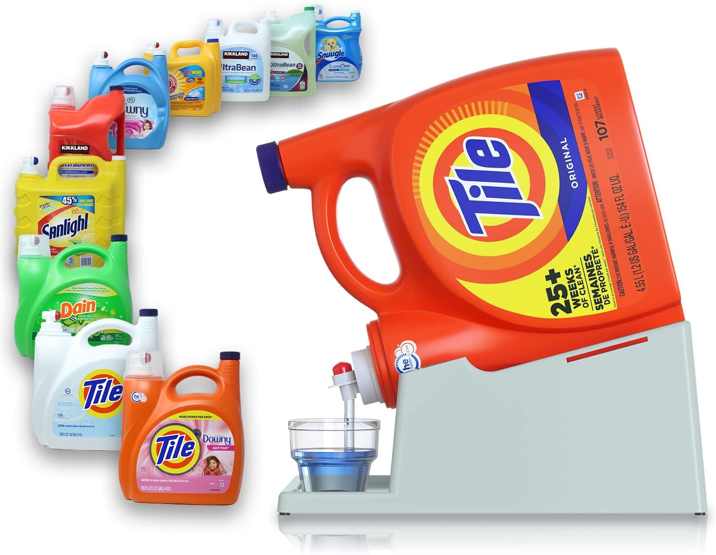 - [Versatile Fit]: The liquid laundry detergent holder station's optimal size (12.2"L x 7.9"W x 5.5"H) accommodates various bottle sizes, providing a perfect fit for most detergent containers without taking up too much space. (Laundry Soap, Cup, and Bottles NOT Included)