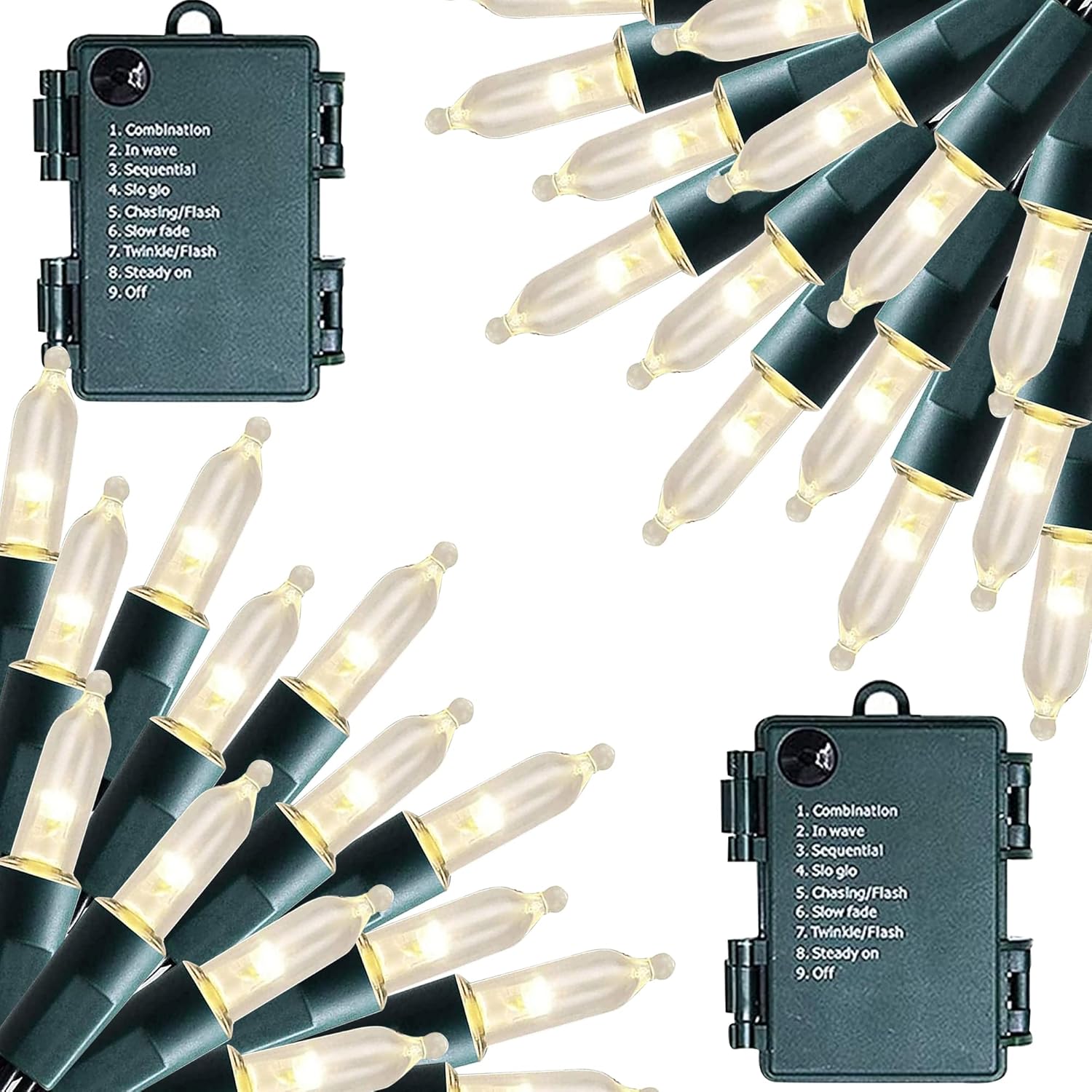 Dazzle Bright Battery Operated Christmas Lights, 2 Pack 32Ft 100LED Clear Mini String Lights Waterproof with 8 Modes for Xmas Indoor Outdoor Yard Holiday Wedding Decorations (Warm White)