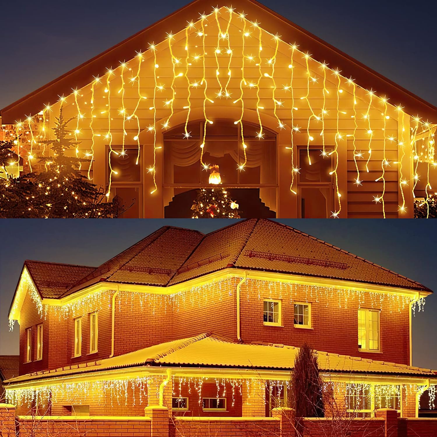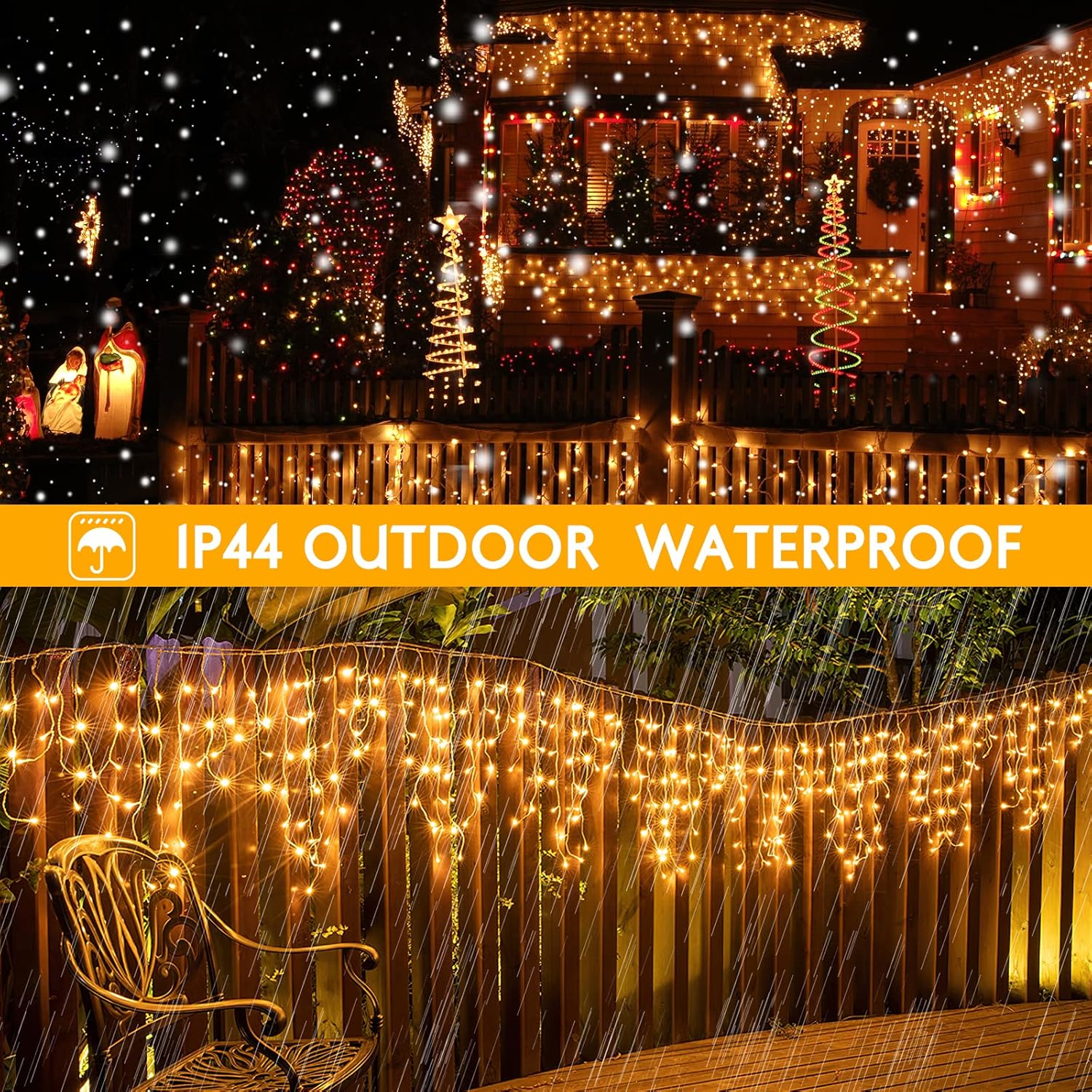 - 【Safe Use LED Icicle Christmas Lights】400 LED icicle lights,each Christmas icicle light adopts premium clear wire with insulation coating, which is corrosion-resistant, aging resistant. Strictly tested and meets the US requirements of string lights UL safety standards to ensure & maximize the safety. 29V low output voltage makes it safe enough for use. IP44 waterproof for indoor and outdoor use.