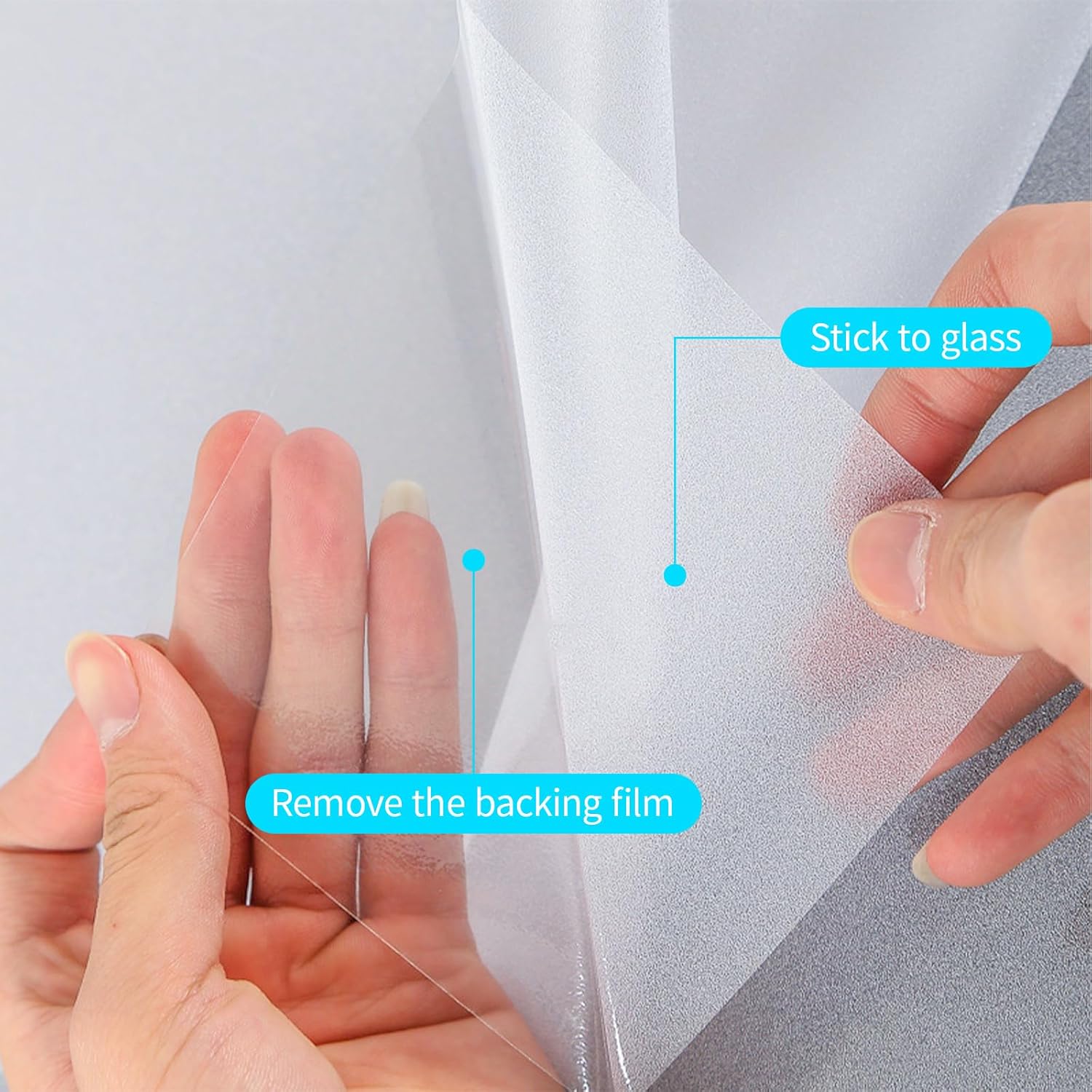 - Get the appearance of frosted glass with this non-adhesive decorative window film, easy do-it. It will be more easier to get out the bubbles by spray enough water before you install. Can be cut to most any sizes or shape you need.