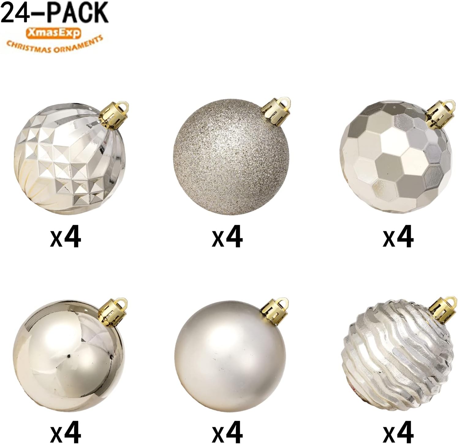 XmasExp 24ct Christmas Ball Ornaments Shatterproof Xmas Tree Hanging Balls Decorations Perfect for Holiday Wedding Christmas Decor (Champagne, 2.36")