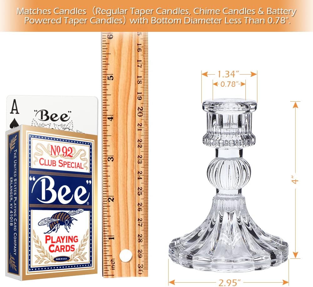 - ❤️Candlestick Holders Set -- Universal Taper Size: Top inner diameter 0.78'', bottom diameter is 3.15''x 4''H. [NOTE]You wanna candles stands straight? Melt the bottoms of the candlesticks into the holder and hold it in place for 10 sec!