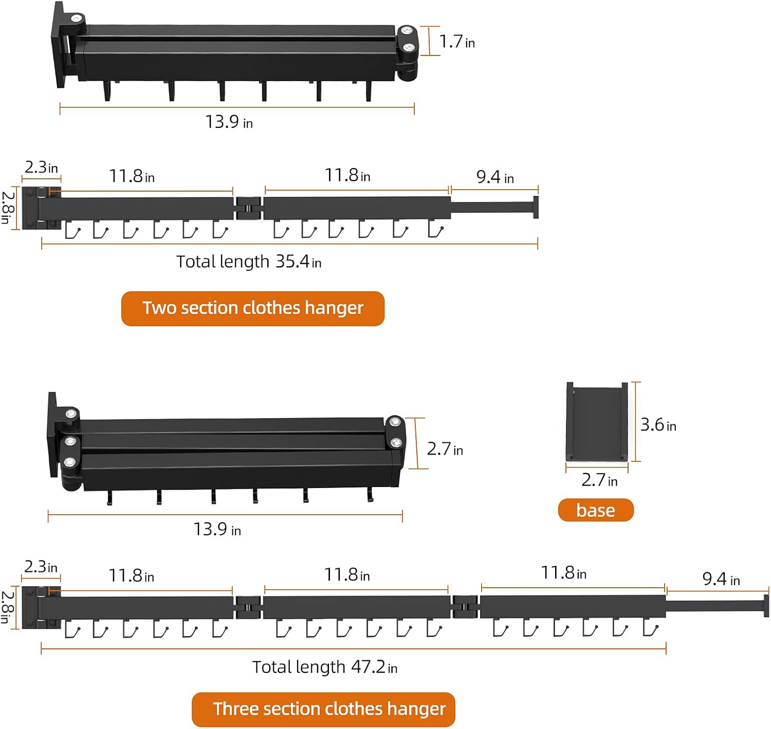 - ✅ Classic 2-Fold Clothes Drying Rack -- Black, Folded length: 13.9" & Extended Length: 34.5". Perfect for small laundry room organizer.***Warm Tips: sheetrock wall is not recommended.