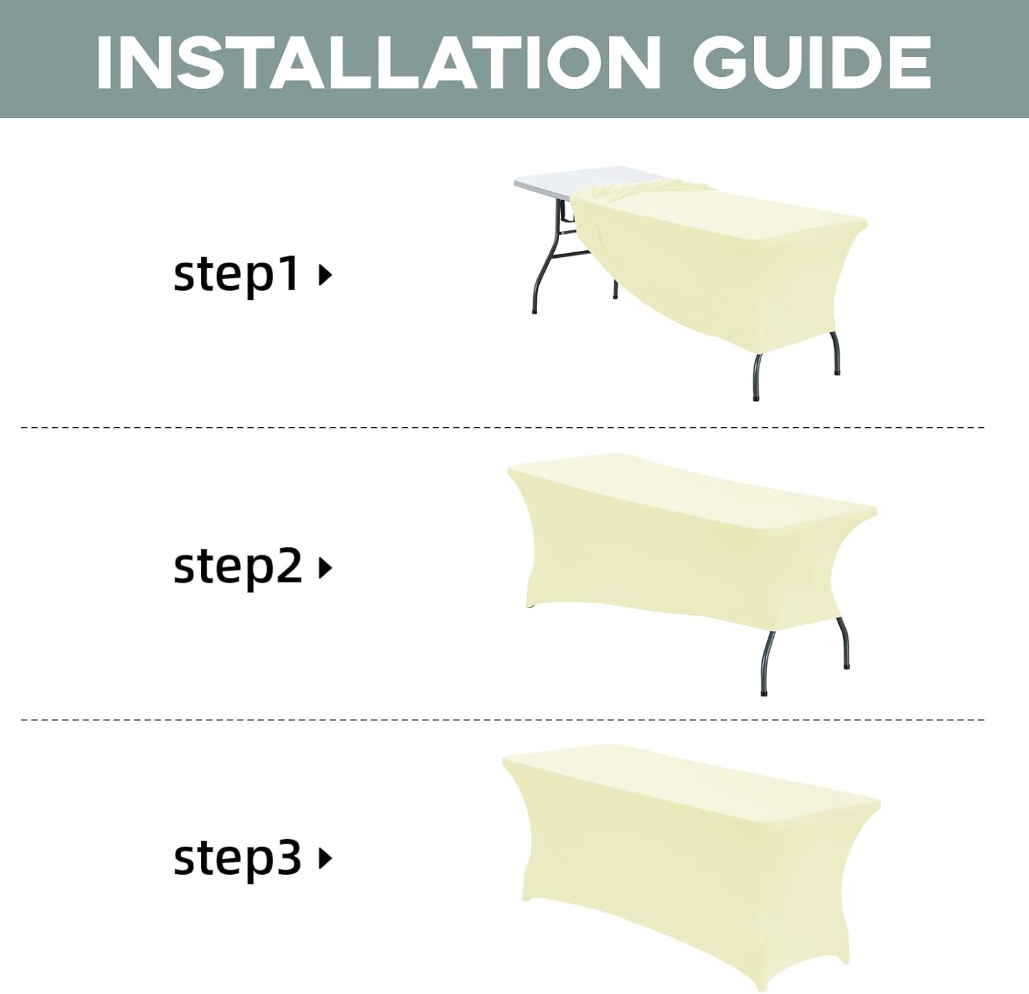 - [Easy To Set Up]: Our table cover is easy for you to set up,just wrap around your table, put 4 table legs into Elastic leg pockets,and ensuring that every part of the rectangular table is covered and spandex table cloth cover is displayed uniformly;It can be used for both indoors and outdoors