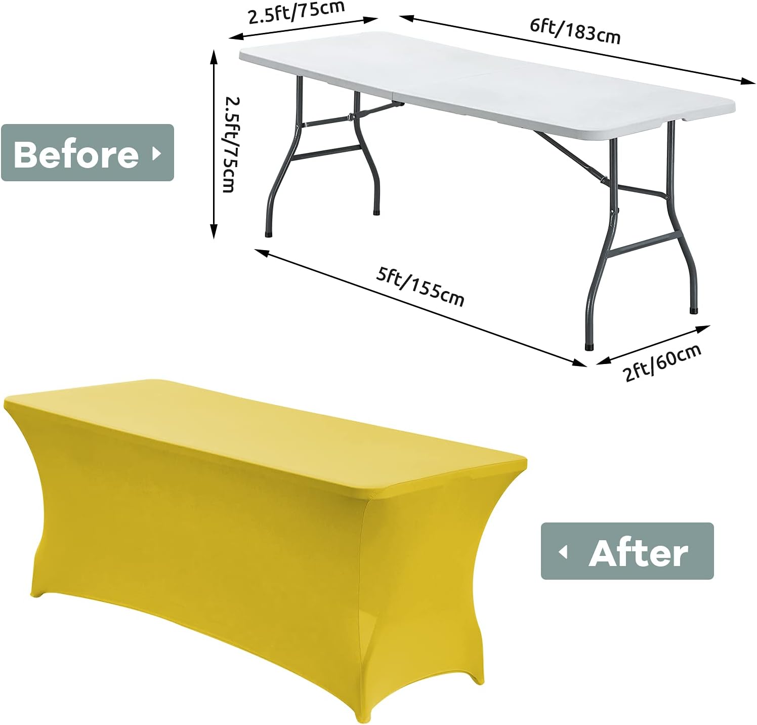 - [Dimensions]:The 6 foot tablecloth fits tables that are 72" Length X 30" Width X 30" Height; It is always fitted and tight for Standard Folding Tables-Universal Rectangular Fitted Tablecloth Protector