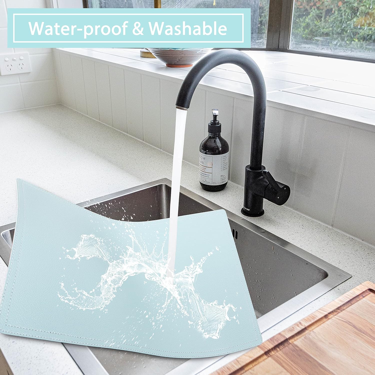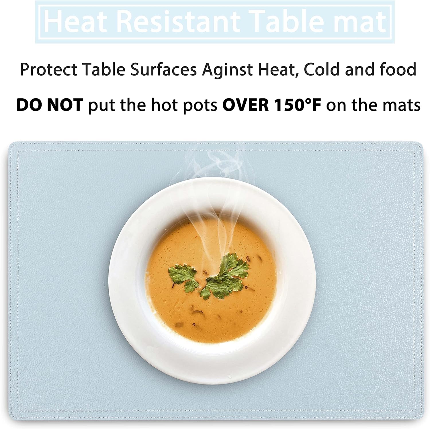 Faux Leather Placemats, PU Table Mats, Set of 6, Waterproof, Stain Resistant, Heat Resistant, Non-Slip Easy to Clean for Kitchen Dining Table,Conference Table C Teal Blue