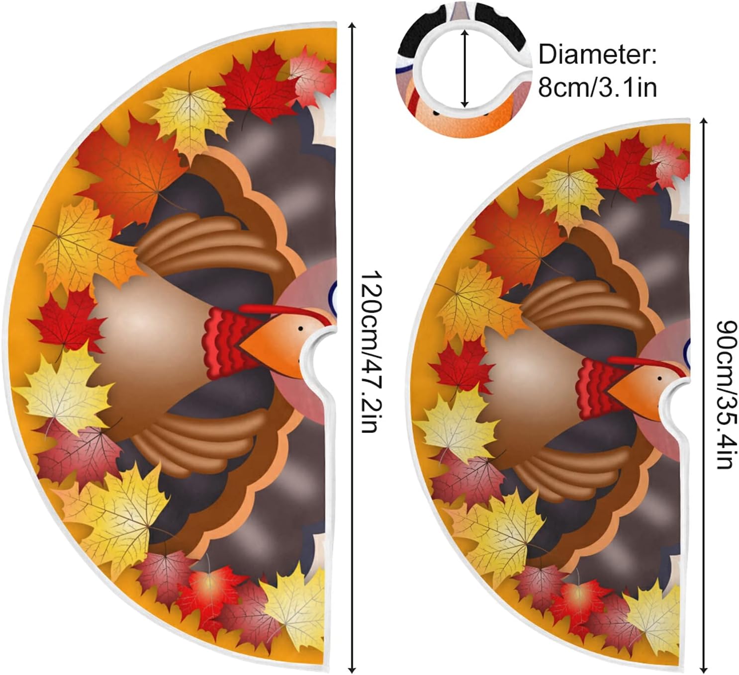 Thanksgiving Turkey Maple LeafTree Skirt, Seasonal Tree Mat Holiday Party Supplies Ornaments Indoor Outdoor Decorations for Tabletop Trees 35.4 Inches
