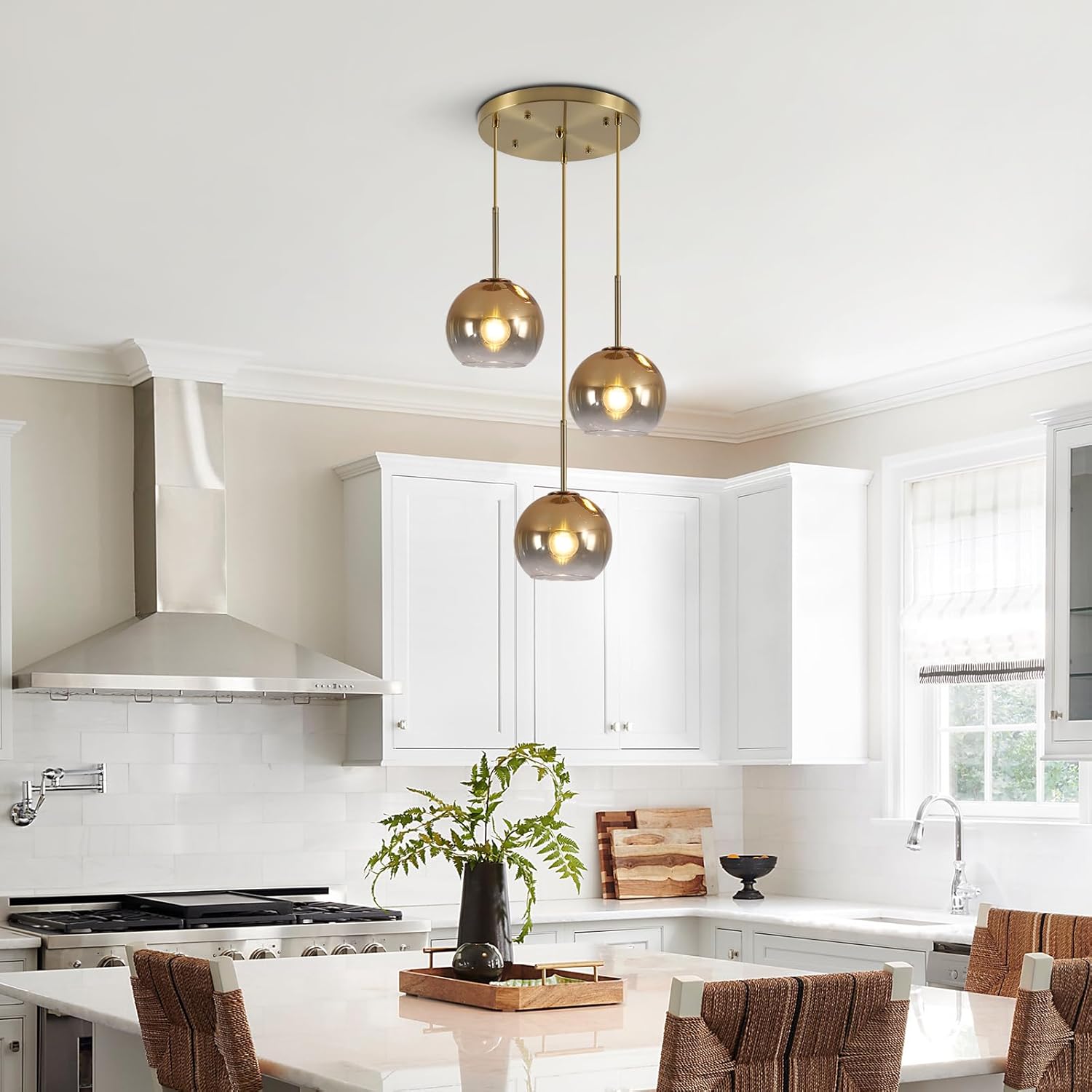 KCO Lighting 3 Light Globe Cluster Pendant Light Modern Glass Cluster Chandelier Gold Glass Pendant Light Fixture Mid Century Dining Room Chandelier Multi Pendant Light Fixture
