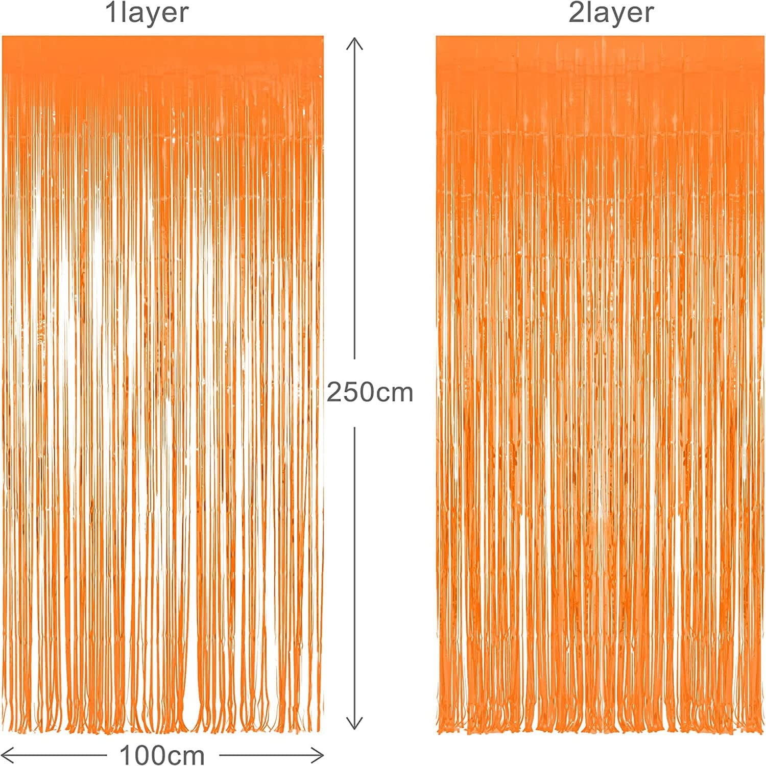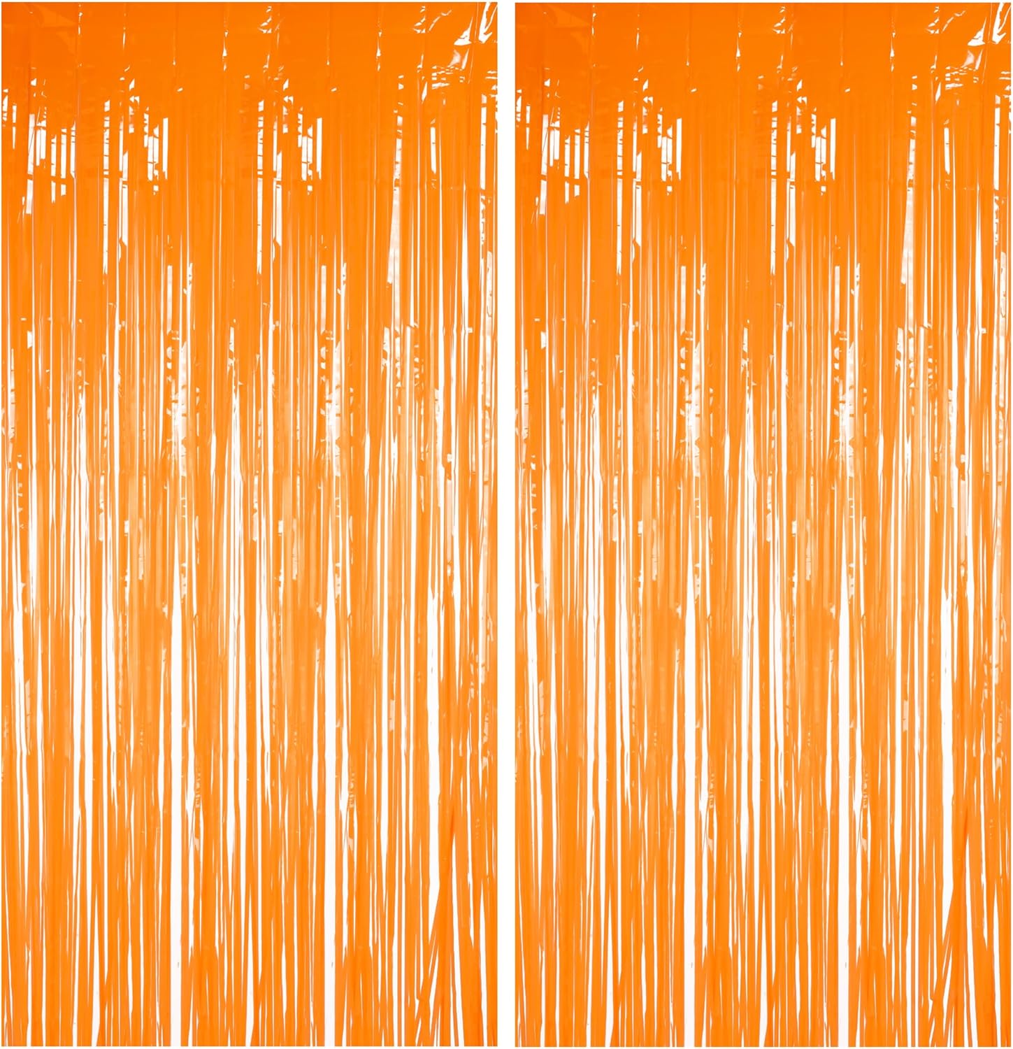 Foil Fringe Curtains Halloweens Decorations - Orange Tinsel Photo Backdrop Party Streamers for St Patricks Day, Easter, Birthdays, Fall, Pumpkin Theme, Thanksgiving, Basketball Party Decorations