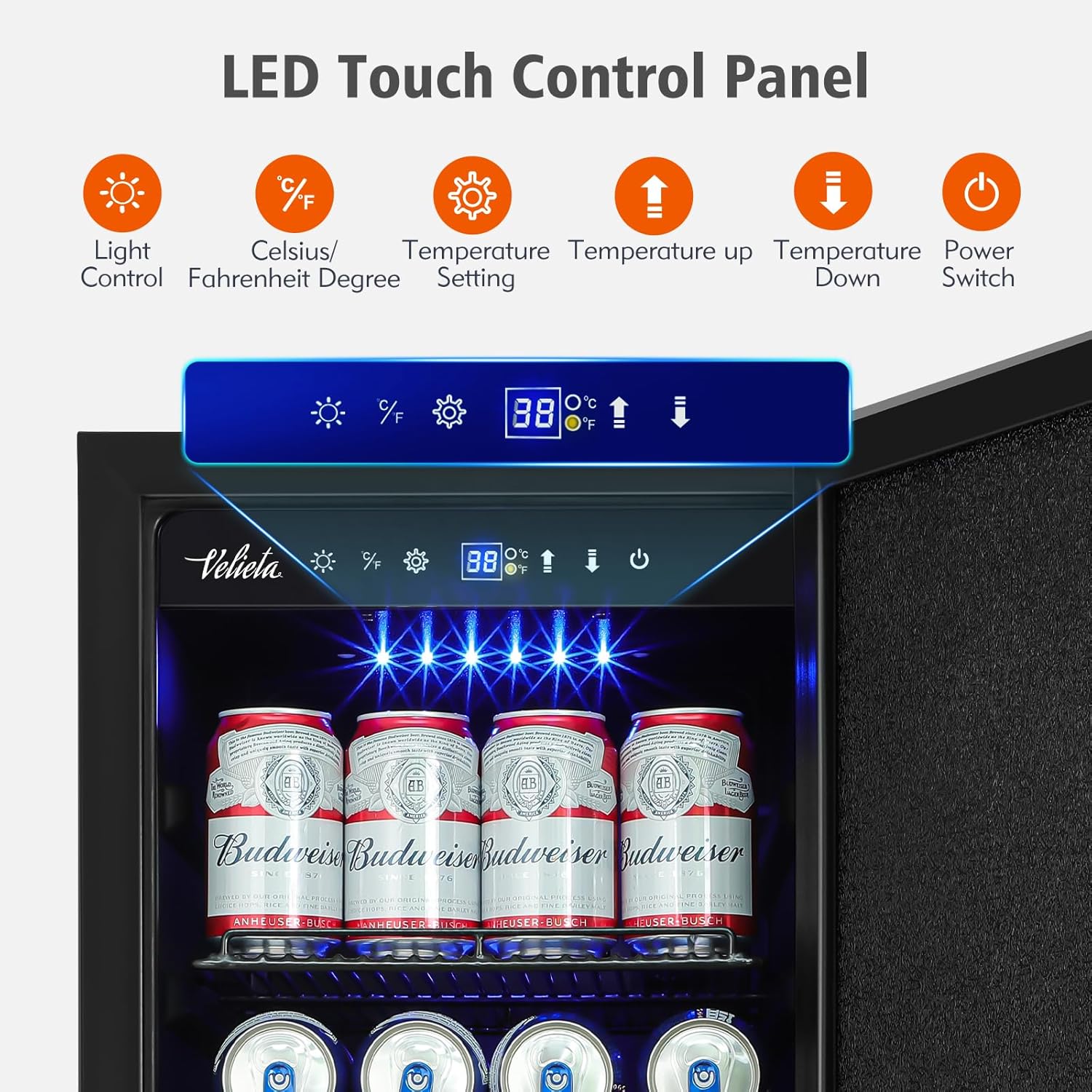 - 【Stainless steel French Door】Velieta beverage fridge has a new designed French Stainless steel door which can effective insulation from outside hot air to improve the insulation. The simple atmosphere of the stainless steel door makes it a durable and long-lasting companion