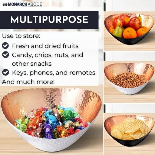 - PERFECT SIZE FOR HOME DECOR: Measuring 7.5 x 6.75 x 3.5 inches, this large decorative bowl is ideal for both practical use and stylish display. Great as a modern fruit bowl, decor bowl, or key dish bowl for entryway table—a standout addition to any room. Its hammered design and exquisite finish make it an attractive centerpiece for any kitchen countertop, dining table, or coffee table, adding a touch of sophistication to your home decor.