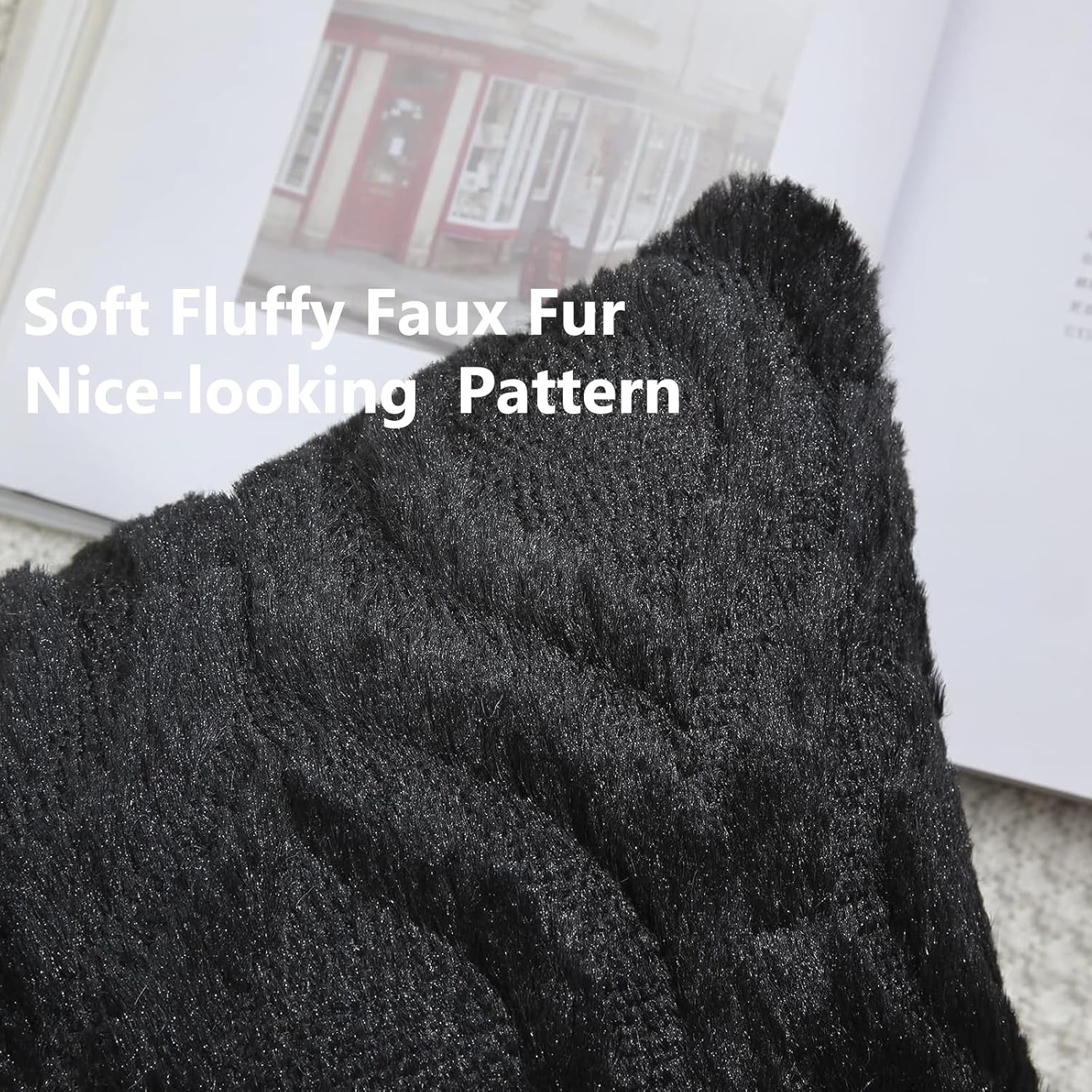 decorUhome Fall Throw Pillow Covers 22x22 Inch Set of 2, Soft Plush Decorative Faux Fur Black Solid Couch Pillow Covers, Accent Farmhouse Neutral Square Euro Pillow Cases for Sofa Bed Living Room