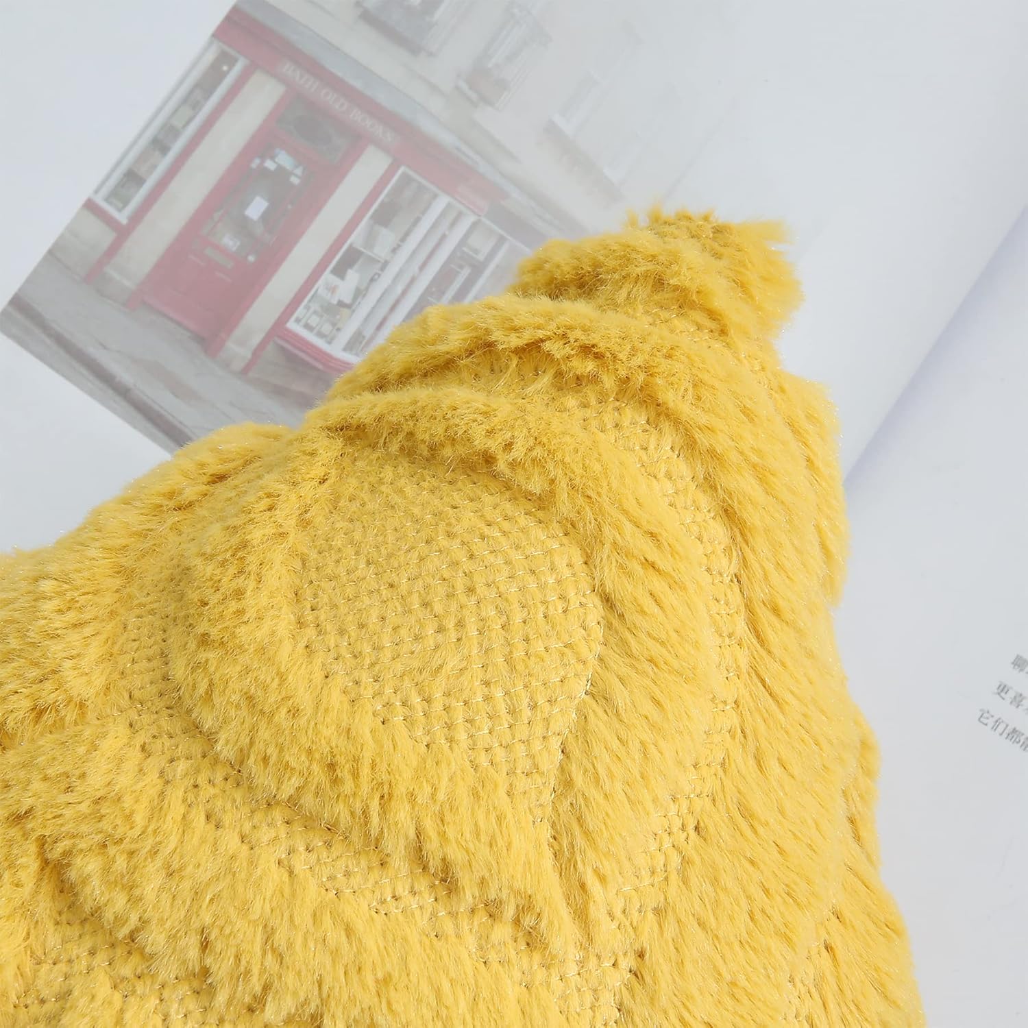 decorUhome Throw Pillow Covers 24x24 Inch Set of 2, Soft Plush Decorative Faux Fur Mustard Yellow Solid Couch Pillow Covers, Accent Farmhouse Neutral Square Euro Pillow Cases for Sofa Bed Living Room