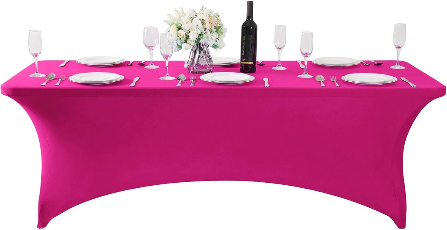 SuperO Waterproof Spandex Table Cover for 8FT Table Universal Fitted Stretch Tablecloth for Party, Banquet, Wedding and Events-Fuchsia