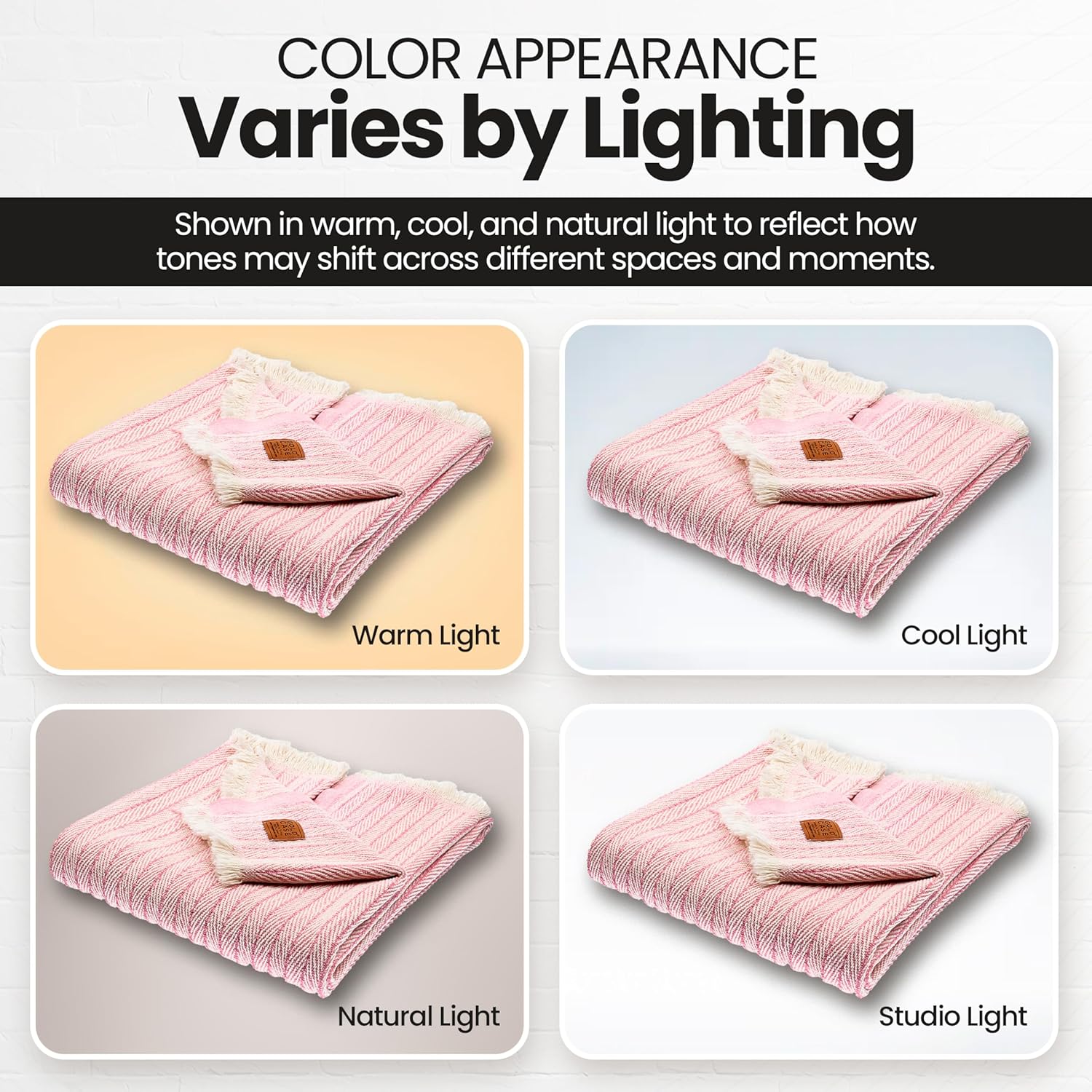 Gold Case Throw Blanket for Couch – 100% Recycled Turkish Cotton Blankets & Throws – Elegant Decorative Throw Blankets for Living Room Sofa – Woven Throws for Couch – Retro Pink – 50x60