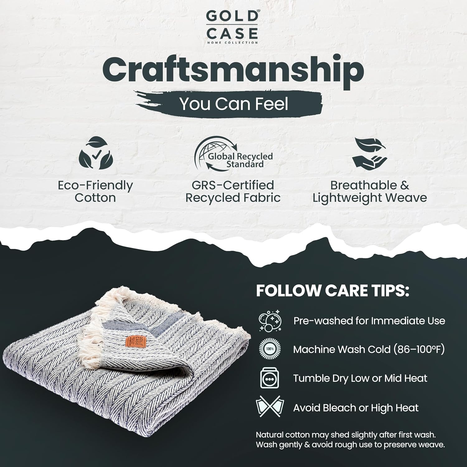 Gold Case Throw Blanket for Couch – 100% Recycled Turkish Cotton Blankets & Throws – Elegant Decorative Throw Blankets for Living Room Sofa – Woven Throws for Couch – Vintage Navy Blue – 50x60