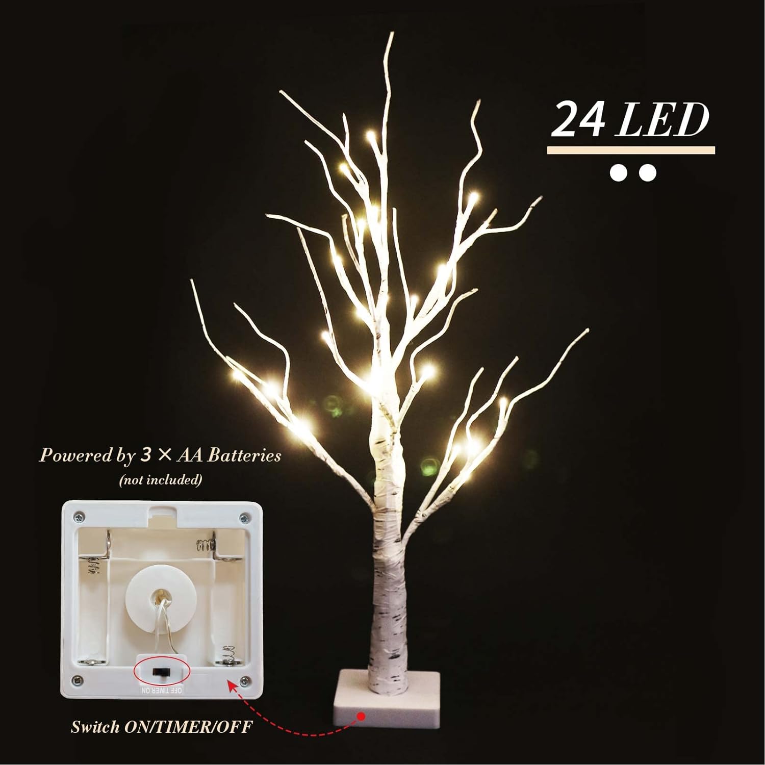 2FT Birch lamp 24 LED Birch Tree Light Tabletop Artificial Tree Light Warm White Light Table Lamp Battery Operated Tabletop Tree with Timer for Birthday Gift Room Festival Decoration Home Party