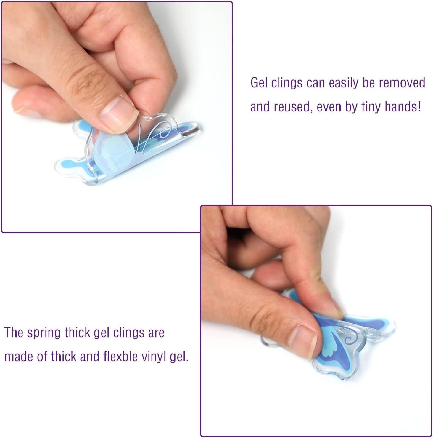 - Removable and reusable: the spring thick gel window clings are vinyl gel clings which can easily be removed and applied for a long time, even by tiny hands, you can remove these thick gel clings anytime and reuse them year after year, they don't leave any residue on the glass