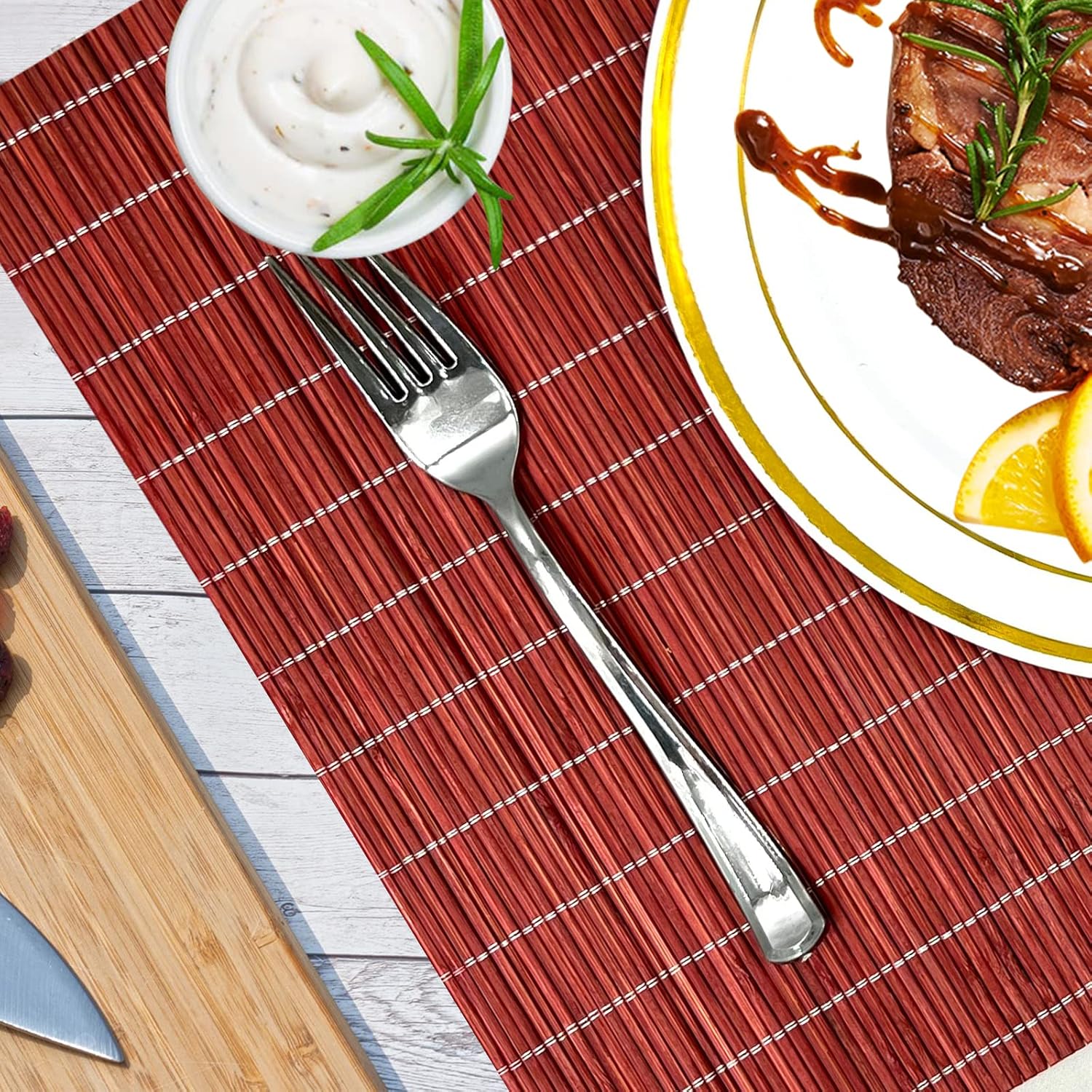 ANDSTAR Set of 8 Pcs Bamboo Placemats Natural Anti-Slip Bamboo Placemats Washable Heat-Resistant Table Mats for Dining Room and Kitchen (Red)