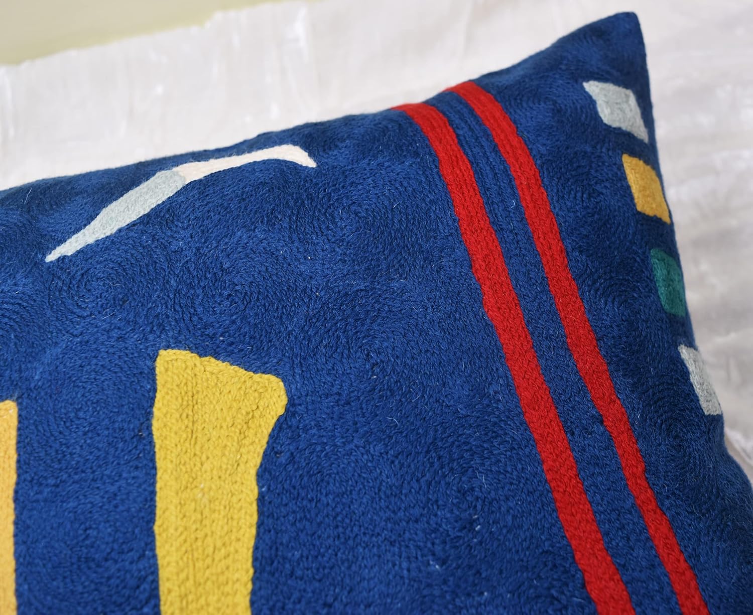 Kandinsky Abstract Pillow Cover - Blue | Modern Throw Pillows | Contemporary Chair Pillow | Modern Farmhouse Pillows | Modern Couch Pillow | Needlepoint Accent Cushion | Size 18x18