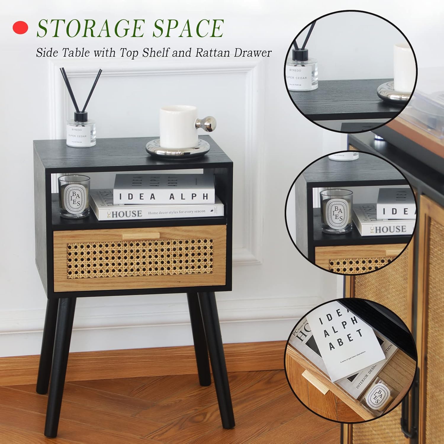 - Stylish and Practical Storage: The bedside table features a two-tier storage design, a unique extra top shelf and a spacious tabletop with a natural rattan drawer to fit your snug home and provide more space to put down books, snacks, drinks