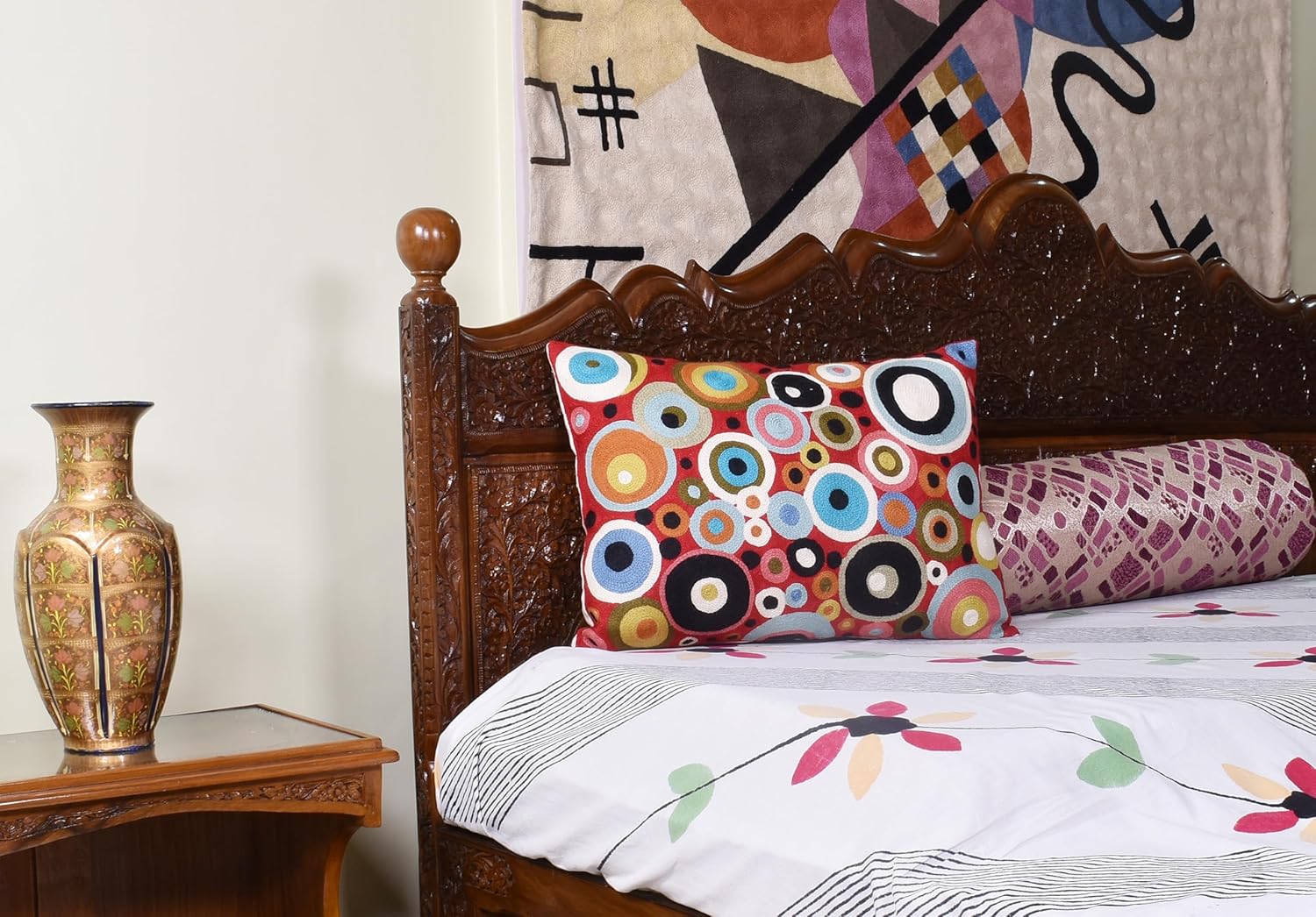 - ❤ Polka Dot Throw Pillow Cover - Hand Embroidered: Indulge in the charm of our Polka Dot Throw Pillow Cover, where vibrant and delightful polka dot patterns meet the elegance of hand embroidery. These colorful decorative pillows draw their inspiration from modern art designs, and they are meticulously hand-embroidered in soft wool to perfection. When you take a closer look at these Polka Dot Throw Pillows, you'll have the chance to appreciate the incredible fine chain-stitch hand embroidery.