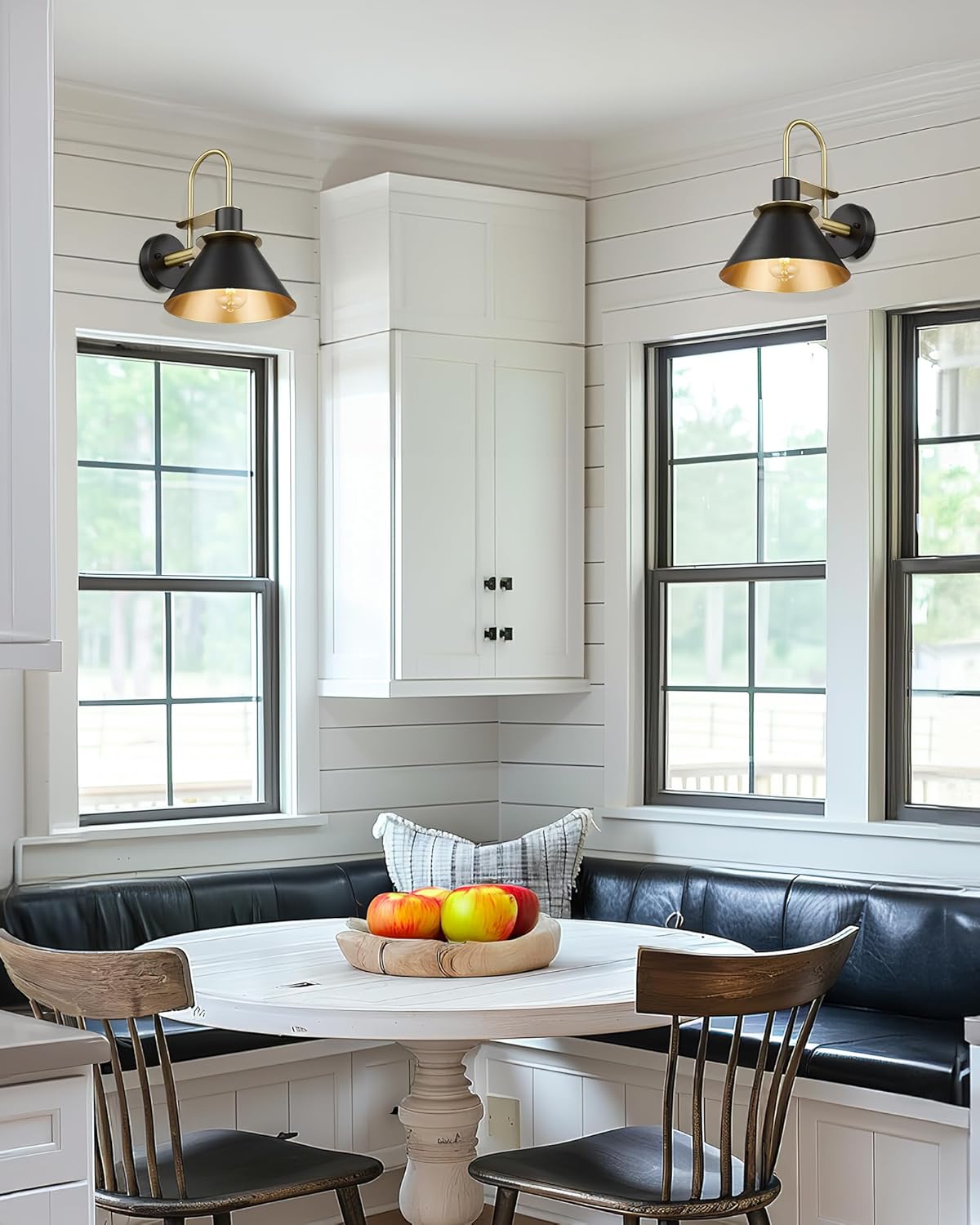 - 【Modern Design】 This single wall lamp compliments the look of almost any indoor or semi-outdoor space, matte black finish decored with brushed gold, the brass interior reflects the light to form an extremely accent contrast. (Attention: Moisture-proof but not waterproof, please keep it away from water)