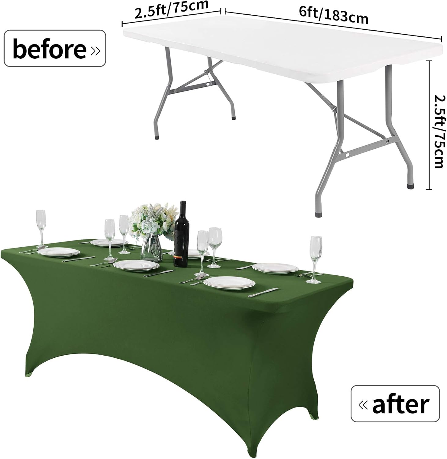 - Easy to use: Easy to set up with four-way stretch spandex material and four pockets for legs are designed for keeping the tablecloth securely in place to fit your table better.