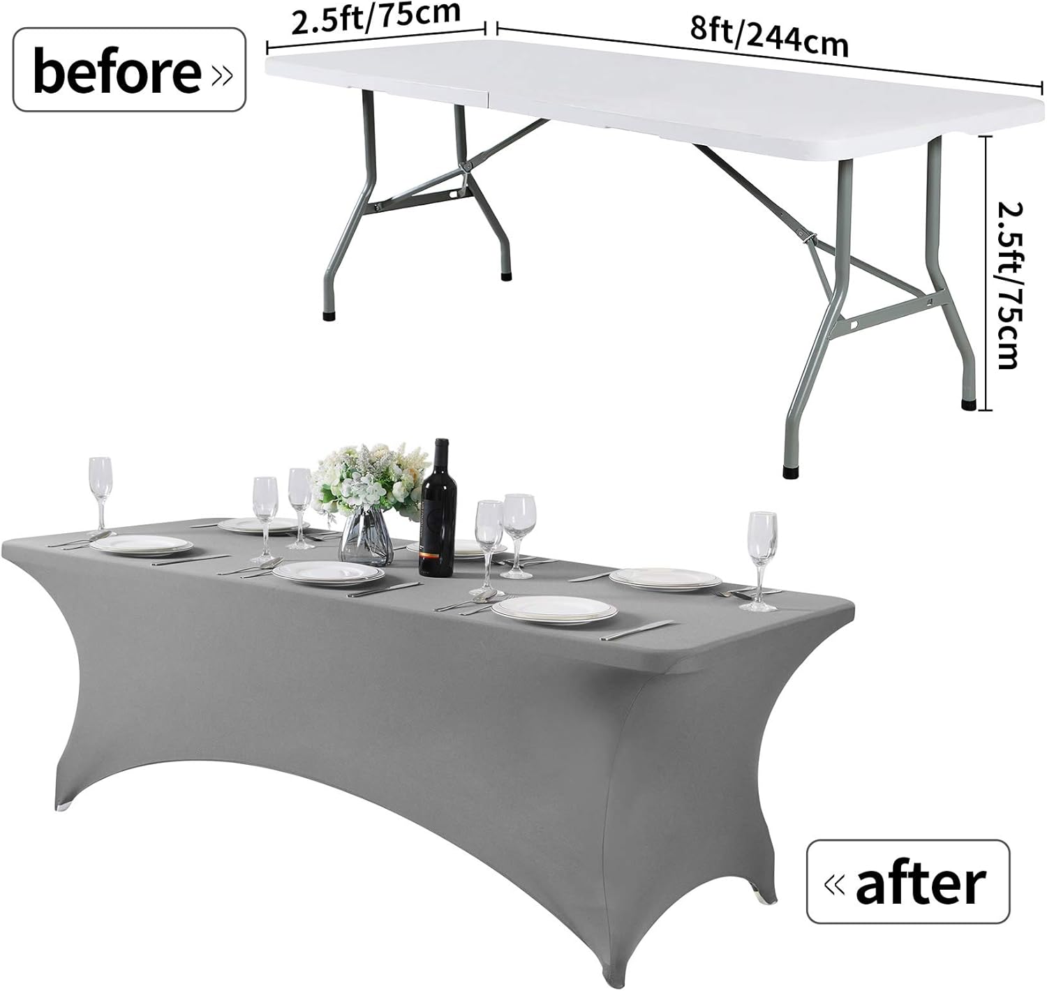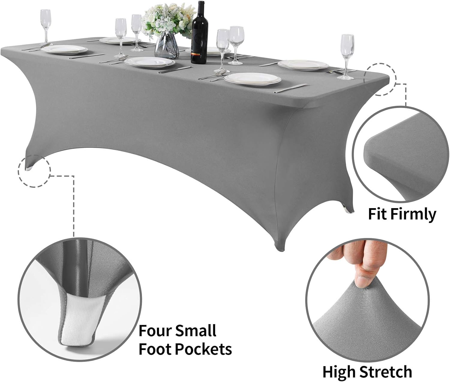 2Pack Spandex Table Cover for 8FT or 4ft or 6ft Table Universal Fitted Stretch Tablecloth for Party, Banquet, Wedding and Events-Gray
