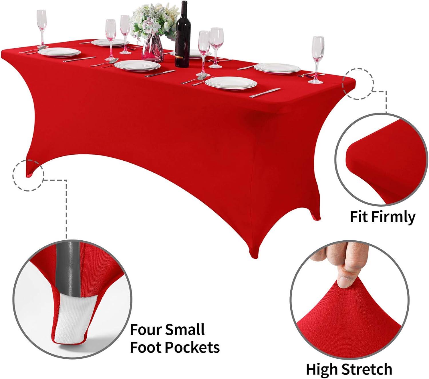 - Easy to use: Easy to set up with four-way stretch spandex material and four pockets for legs are designed for keeping the tablecloth securely in place to fit your table better.