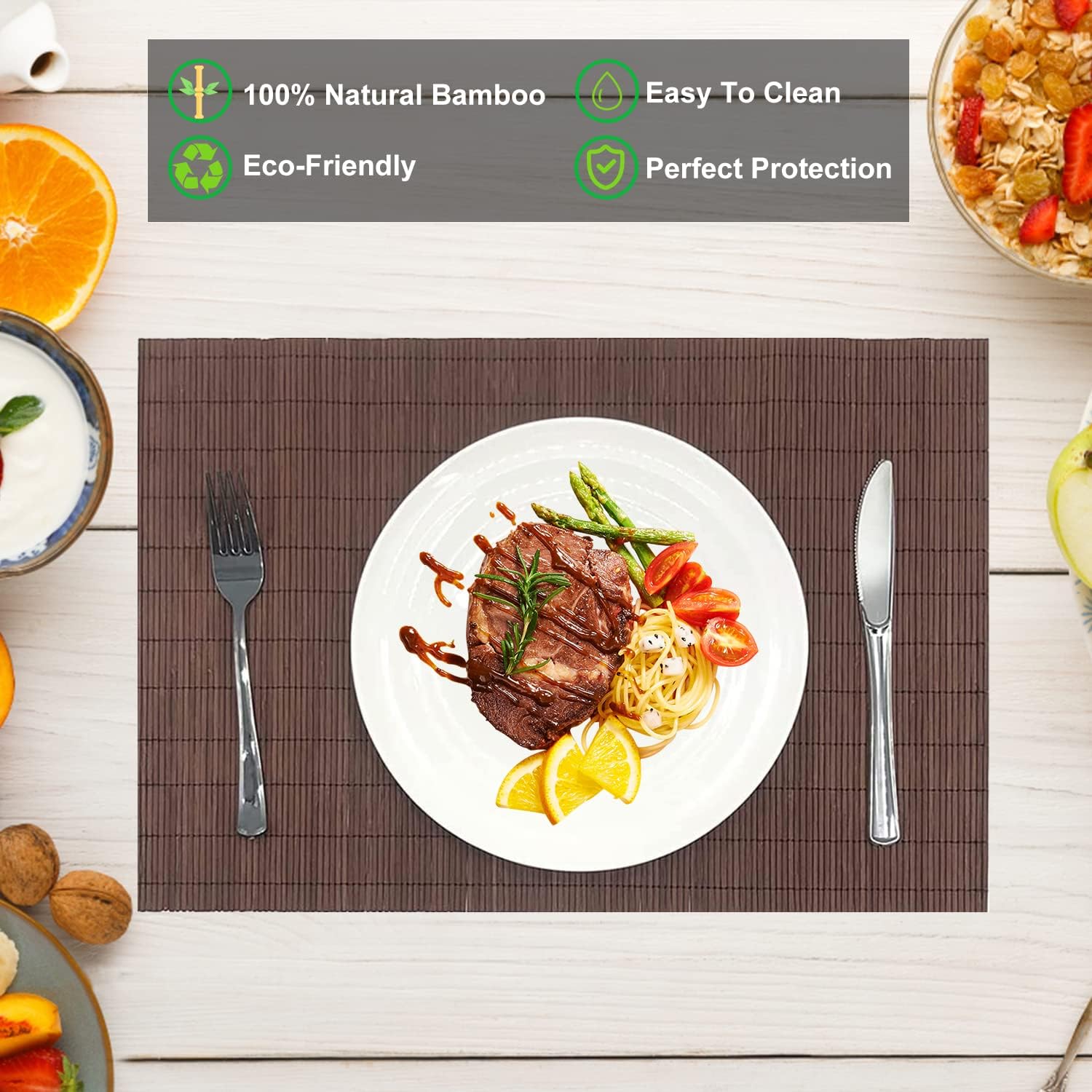 ANDSTAR Set of 12 Pcs Bamboo Placemats Natural Anti-Slip Bamboo Placemats Washable Heat-Resistant Table Mats for Dining Room and Kitchen(Chocolate)