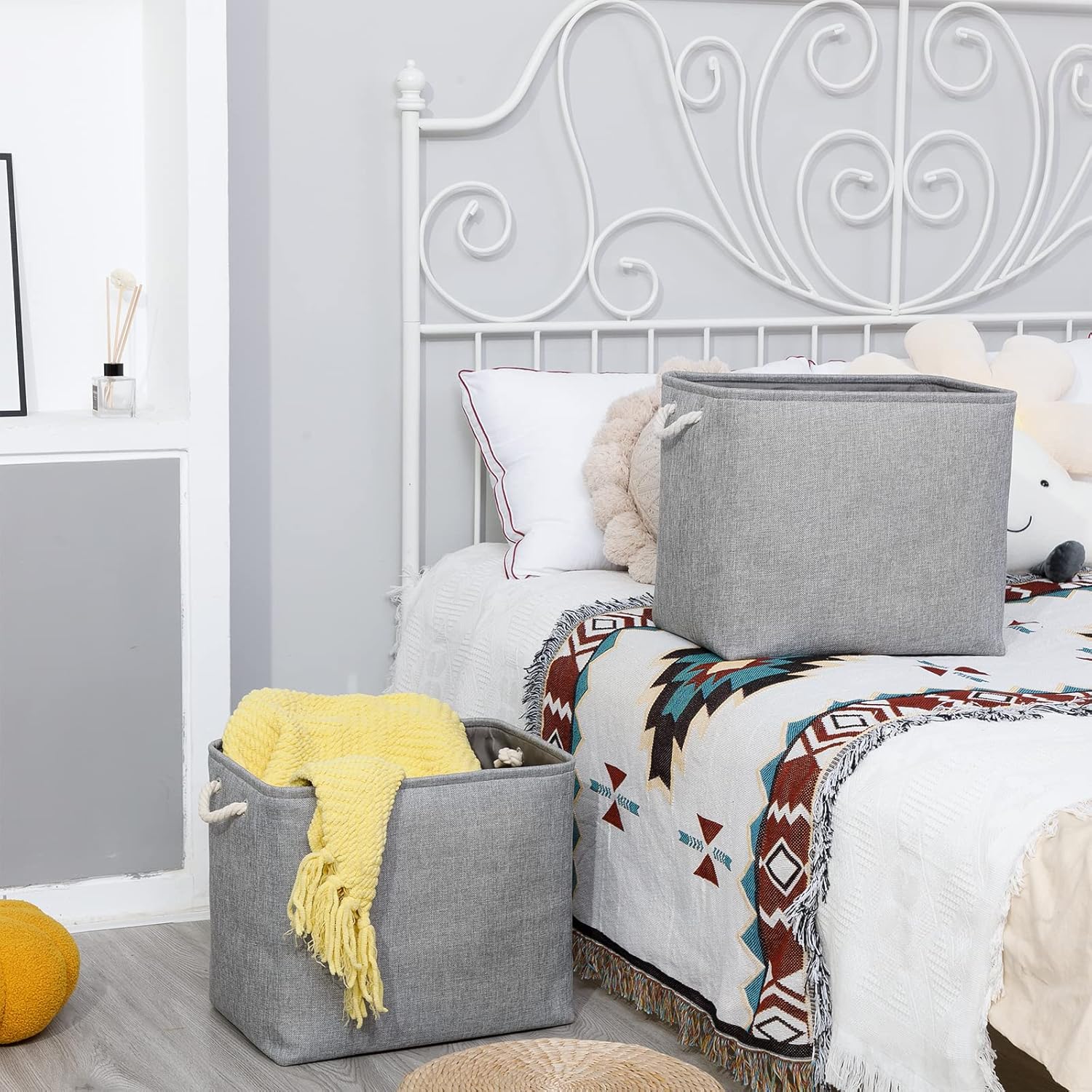 Bidtakay Collapsible Storage Bins for Clothes Large Grey Storage Baskets with Cotton Handles 17x12x15 In Set of 2 Fabric Cubby Storage Bins Livingroom Home Decorative Storage Organizer for Blankets
