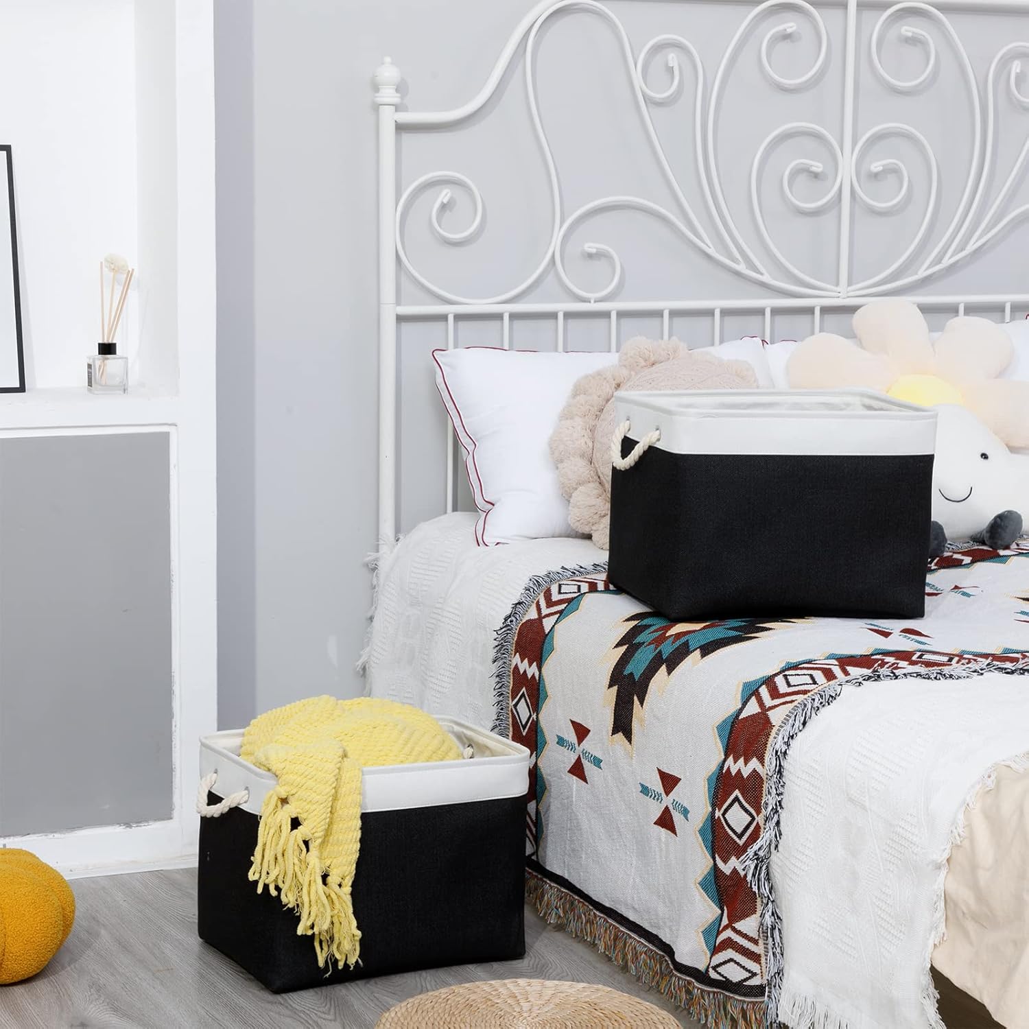 Bidtakay Black Storage Bins Storage Baskets for Shelves Decorative Basket Set of 2 Fabric Cloth Bins for Organizing 16x11.8x11.8 in Large Tall Baskets with Soft Handles for Home Office Living Room