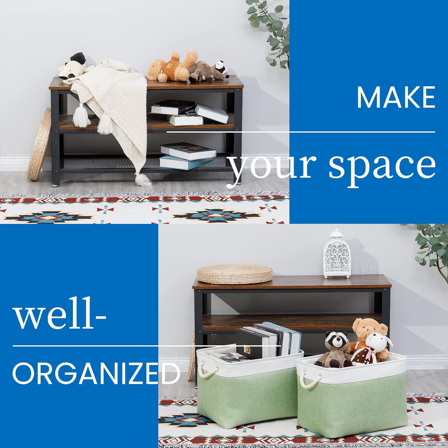 - Easy to Clean: The fabric baskets are easy to clean, dusting the basket with a soft dry cloth is recommended. Spot clean with light soapy water when needed. Not recommended to machine wash because there are a metal frame support inside