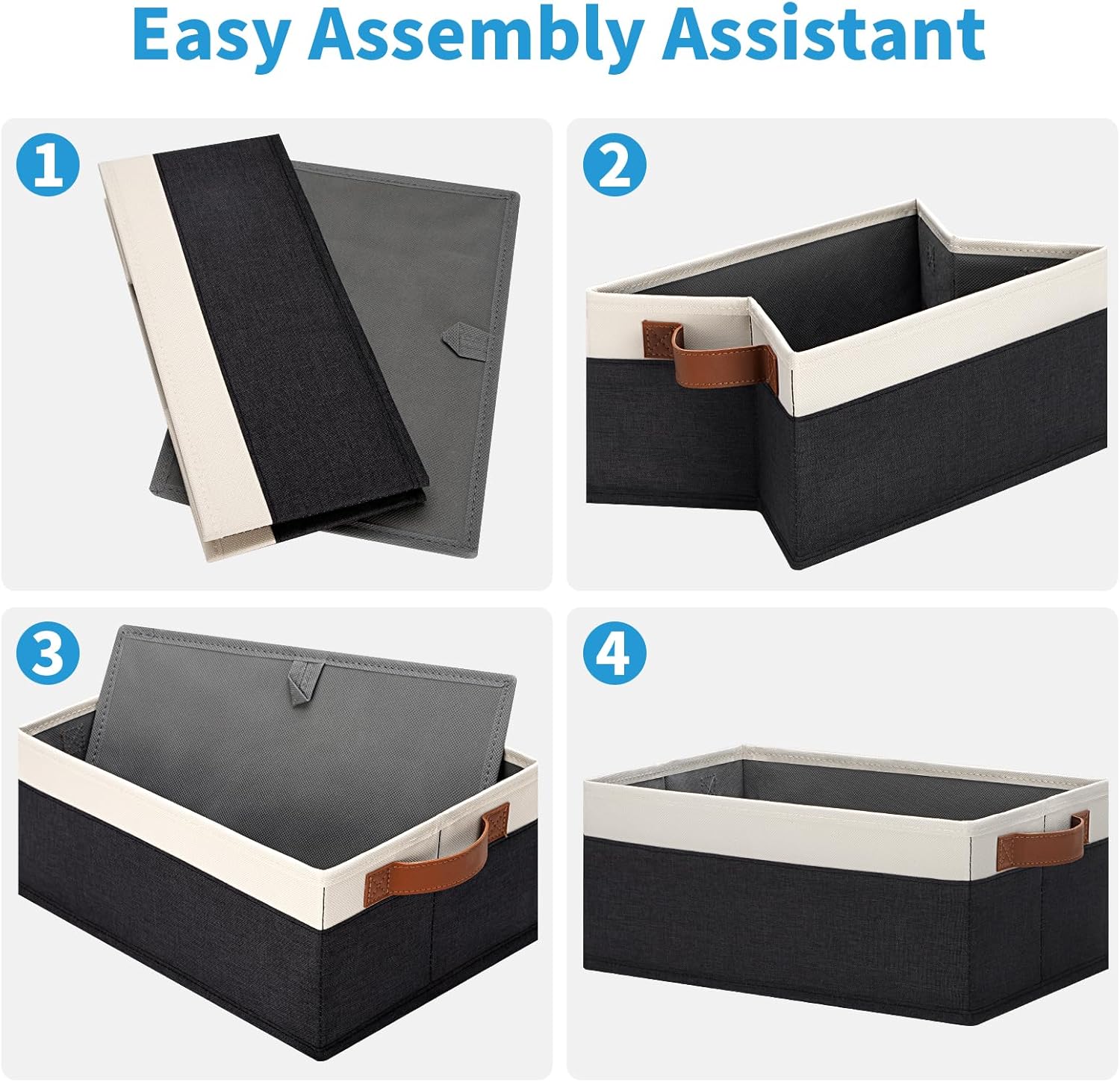 - 👍【FOLDABLE STORAGE BASKET】The collapsible and lightweight baskets for organizing allows you to easily place it when not in use, just by pulling out the stiff bottom cardboard, saving space when not in use or transportation. They are quite easy to assemble, place the stiff bottom cardboard inside and it's ready