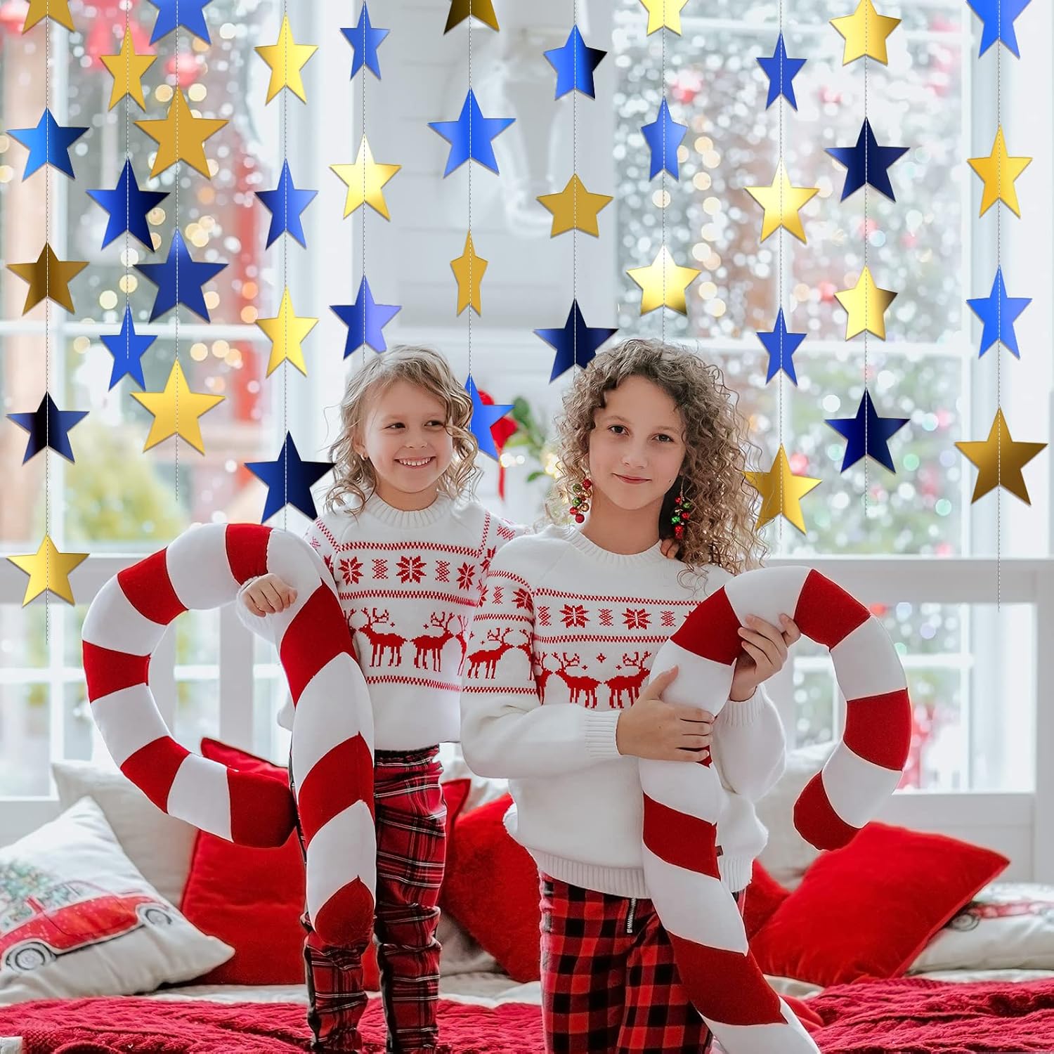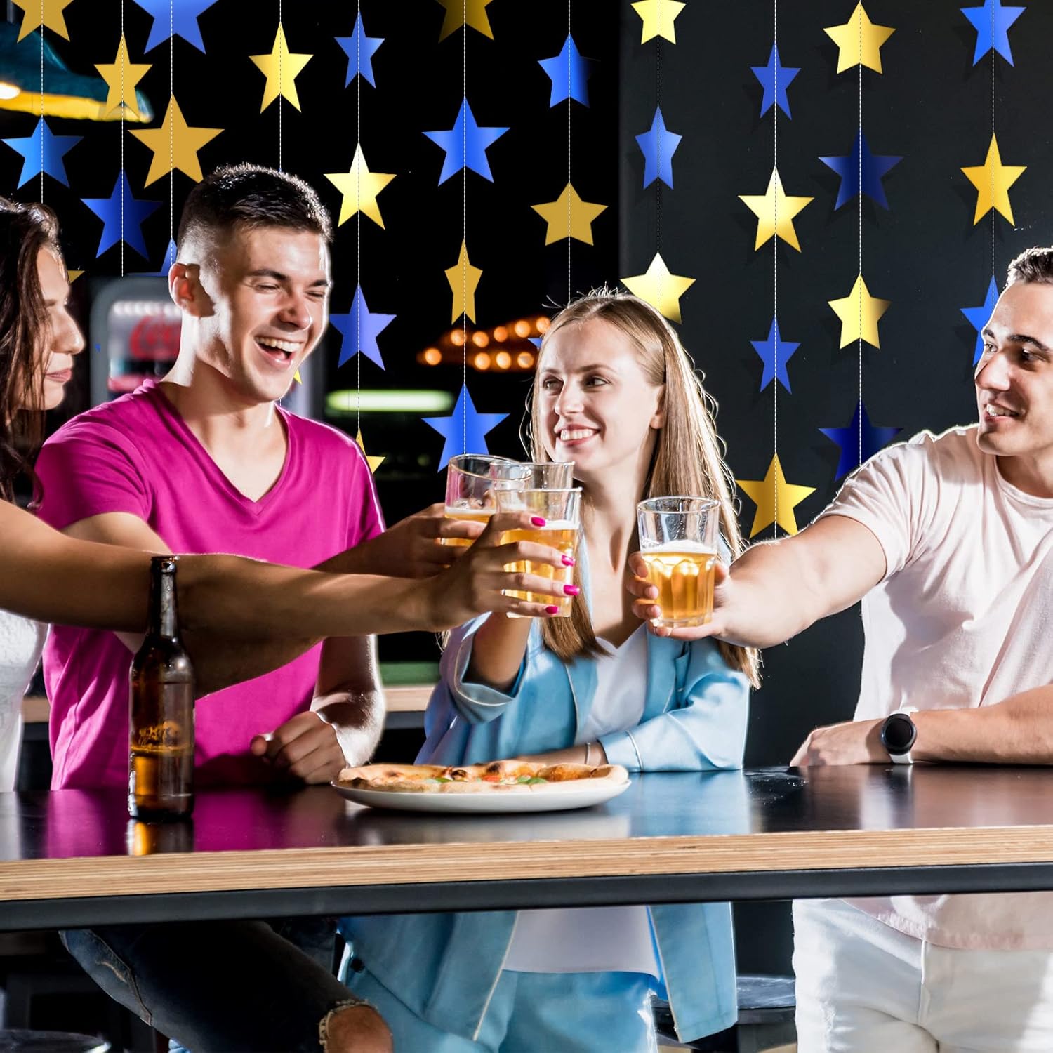 Patelai Glitter Star Garland Banner Decor 130 Feet Star Hanging Bunting Banner Twinkle Backdrop for Homecoming Classroom Wedding Birthday Halloween Christmas Party Supplies(Blue, Gold)