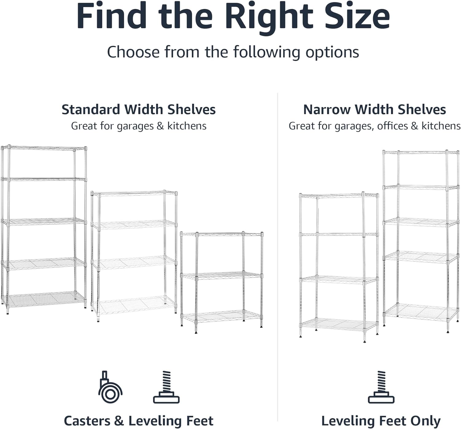 Amazon Basics 5-Shelf Adjustable, Storage Shelving Unit, (200 Pound Loading Capacity per Shelf), Steel Organizer Wire Rack, 23.2 x 13.4 x 60 inches (LxWxH), Chrome