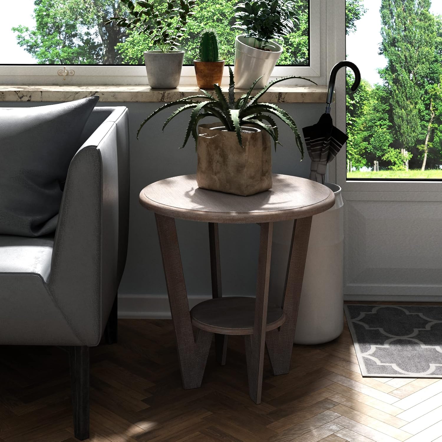 - ✅This unique end table has plenty of room for a few books or an accent lamp up top, while a lower round shelf can hold a few small things or a petite basket for your remotes.